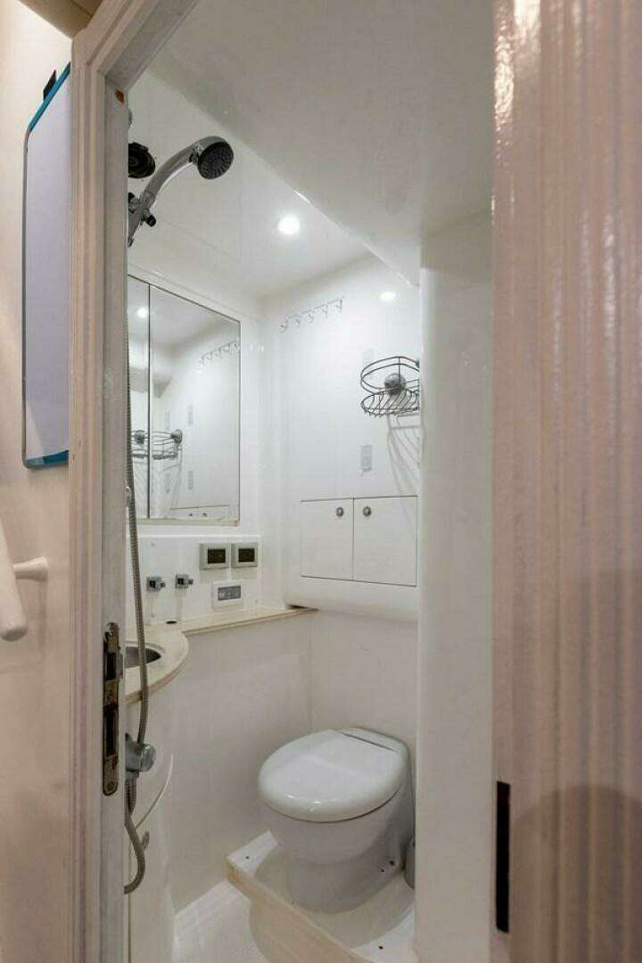 - Built-in shower with hot/cold water on transom
