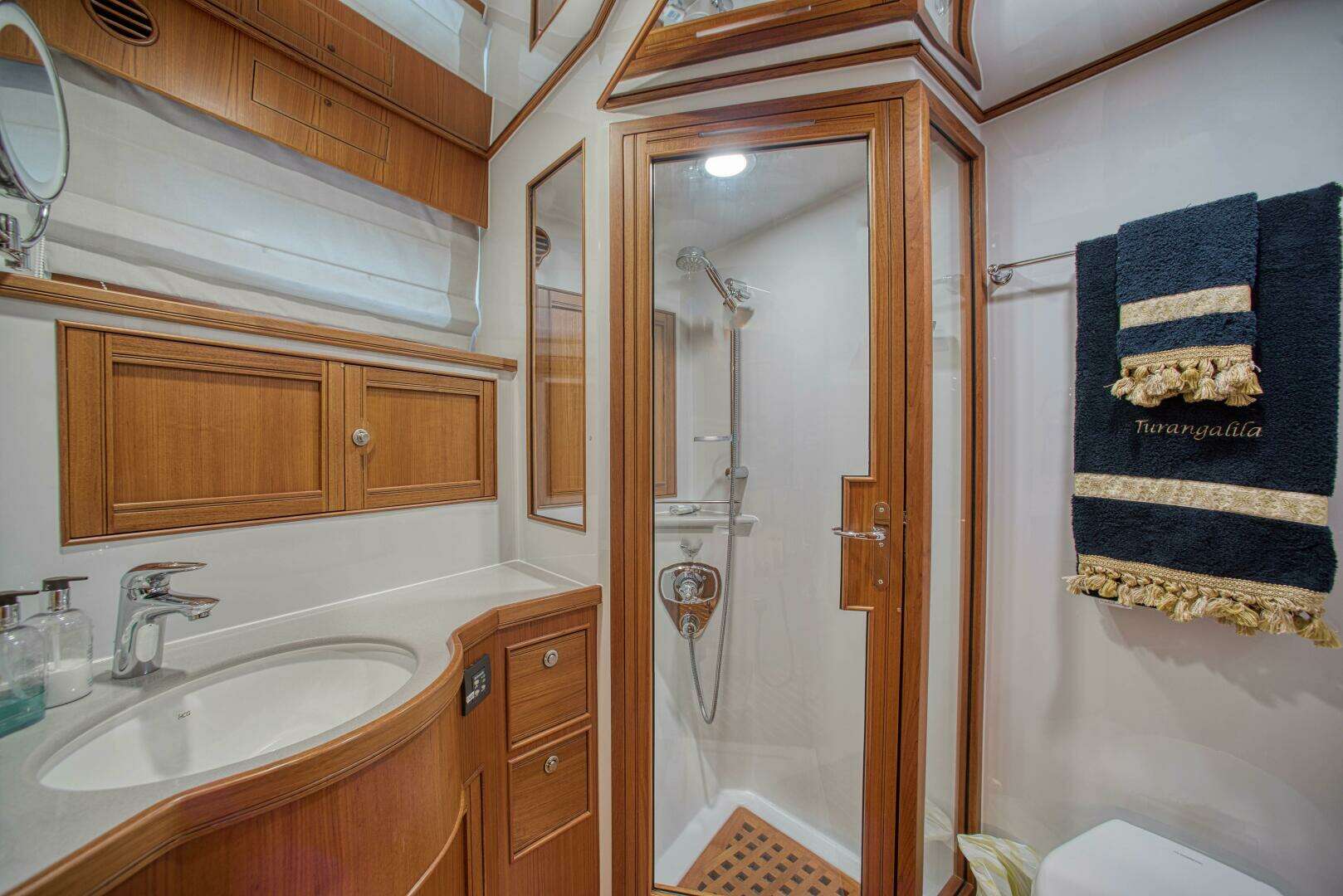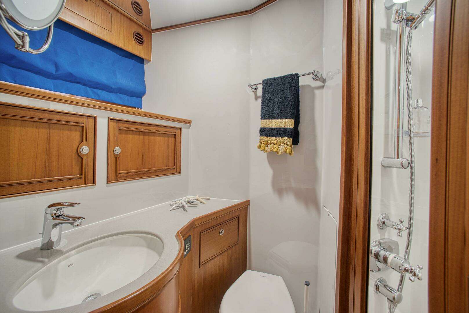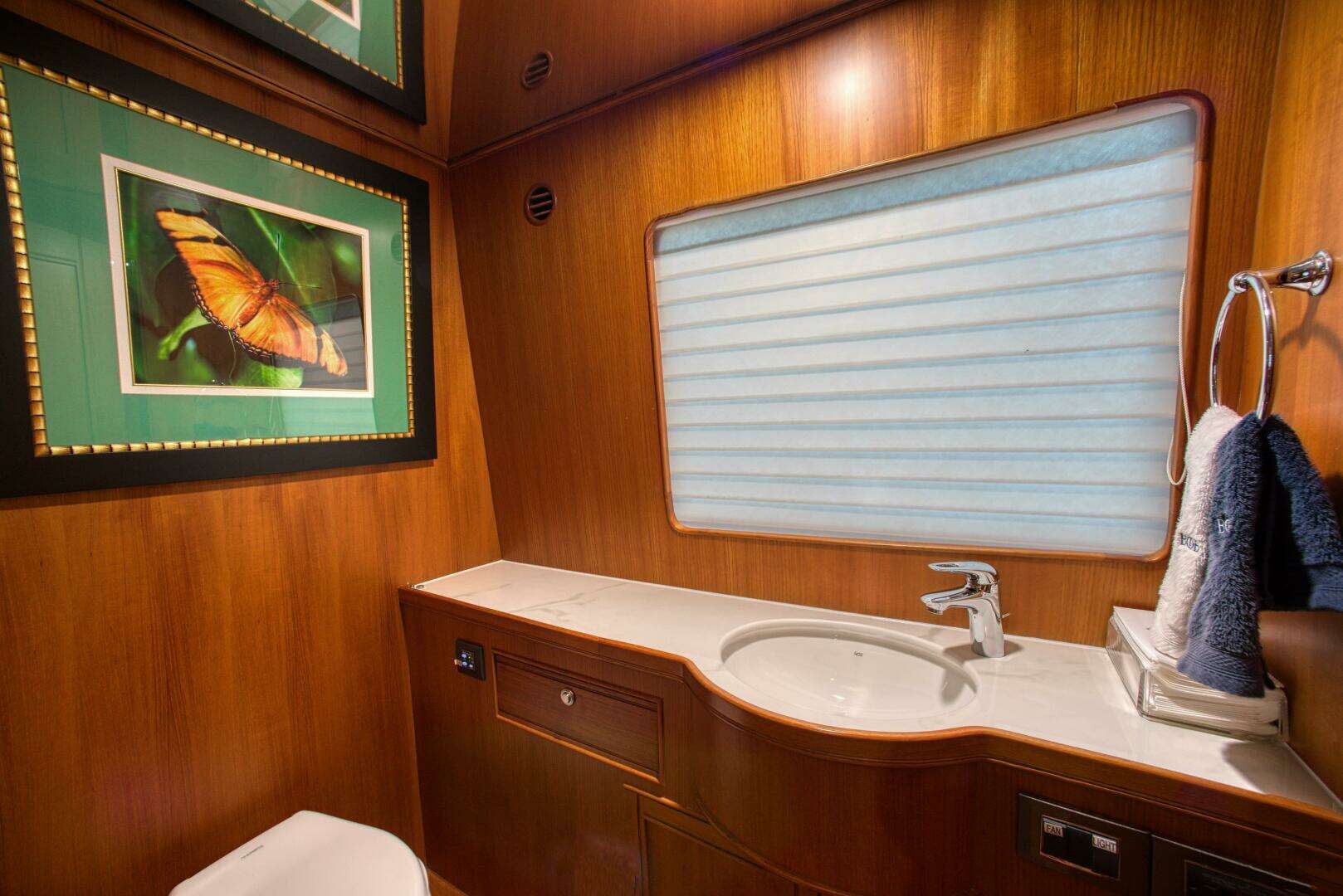 - Command bridge has a spacious day head with sink and toilet to port aft.