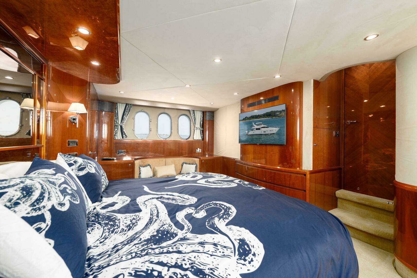 - Amenities: The yacht is equipped with a hydraulic platform, a water maker, underwater lights, and advanced navigation systems. It also features spacious living areas and exceptional storage throughout.