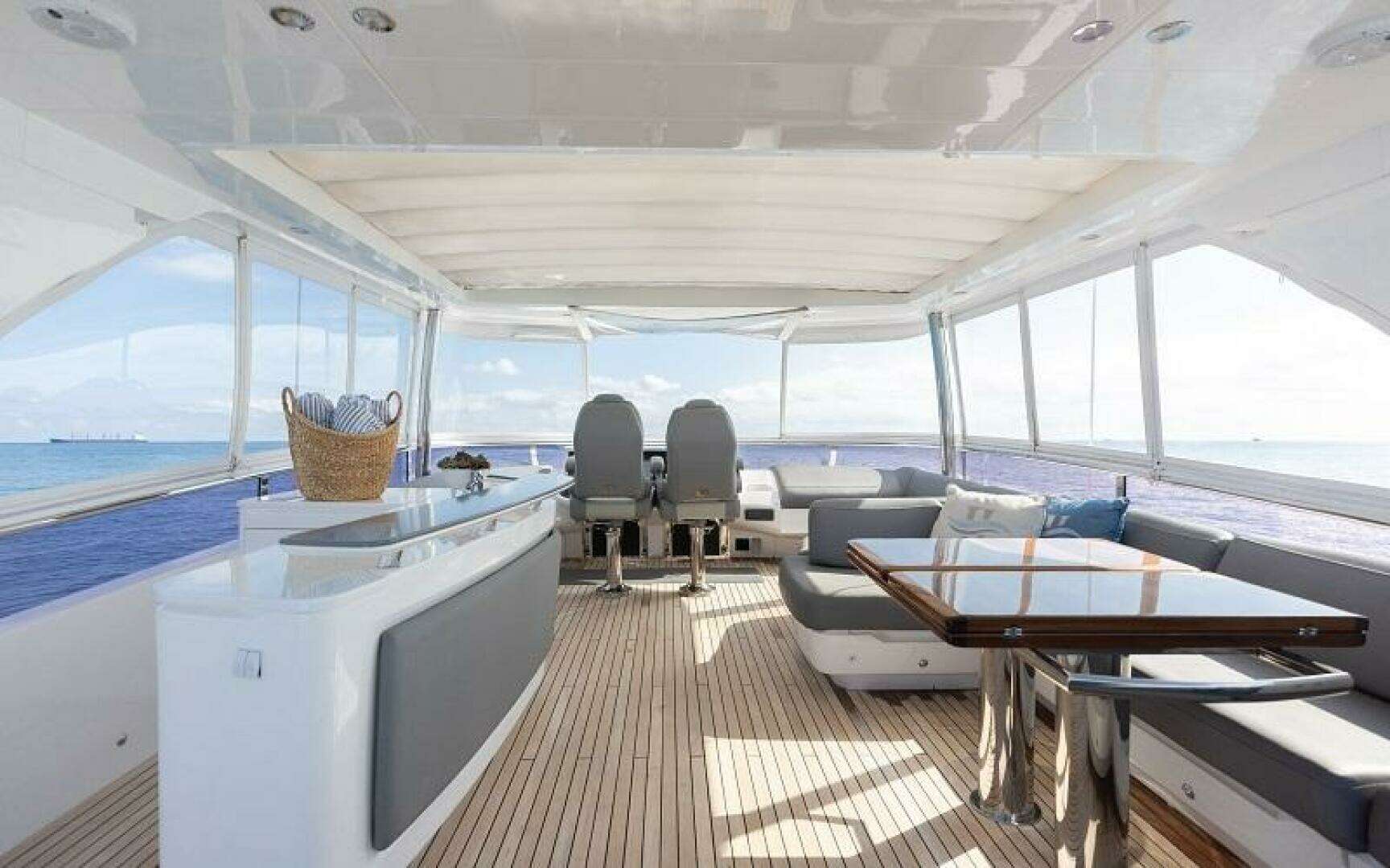 - Large forward sunpad/sun-bathing area with adjustable backrest