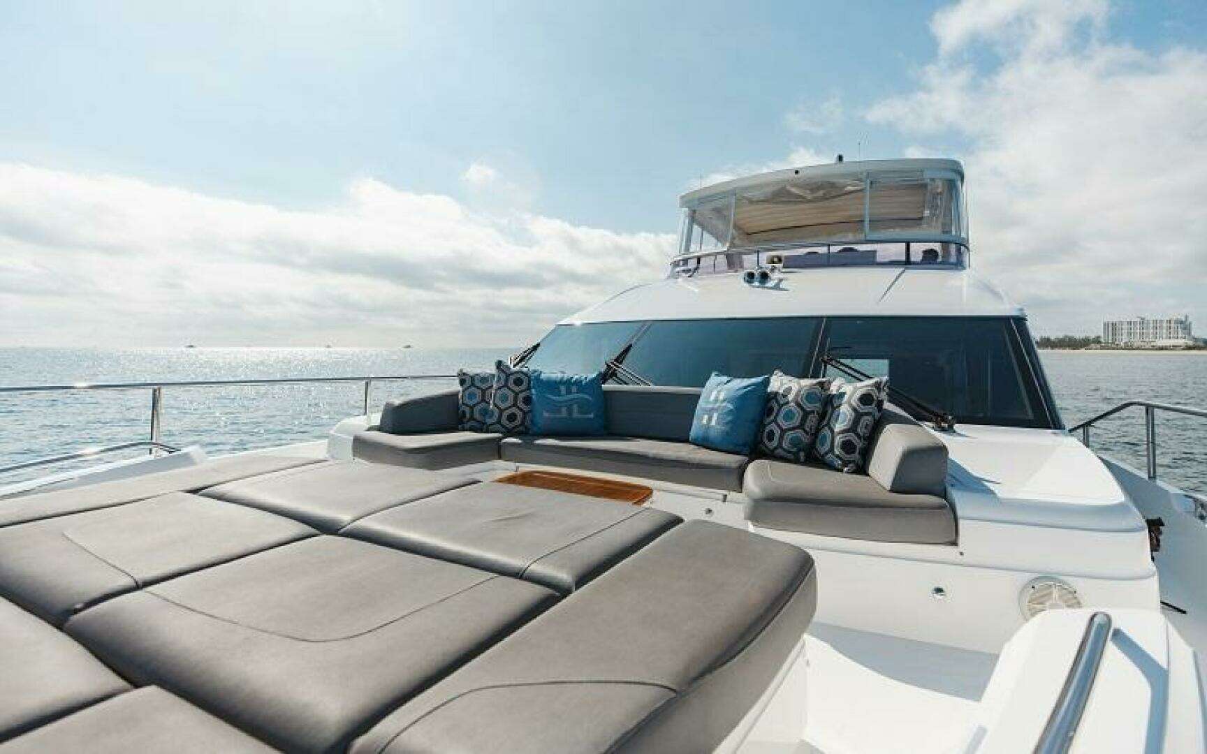 Experience exceptional luxury and performance aboard LADY LUCKEY, a meticulously maintained 2017 Princess 75 Motor Yacht showcasing a beautifully balanced layout and premium craftsmanship throughout. Her spacious main deck features an open-plan salon with panoramic windows, a fully equipped midship galley, and seamless flow to the expansive cockpit for effortless entertaining. Below, four elegantly appointed staterooms—including a full-beam master suite with private access, 2 queen staterooms and an additional twin stateroom which converts into a full size berth if desired—provide comfortable accommodations for up to eight guests. On the flybridge, generous seating, a wet bar, sun lounges, and a hardtop create the perfect space for outdoor living. There is plenty of storage for toys to bring along as well including a davit on the bridge level and 1000lb capacity hydraulic swim platform down below, both areas perfect for launching tenders or jetskiis. Powered by the upgraded package MAN V12 1800 engines and equipped with modern navigation, seakeeper 16 stabilizer, and high-end amenities, this Princess 75 delivers the ideal combination of sophistication, comfort, and offshore capability.