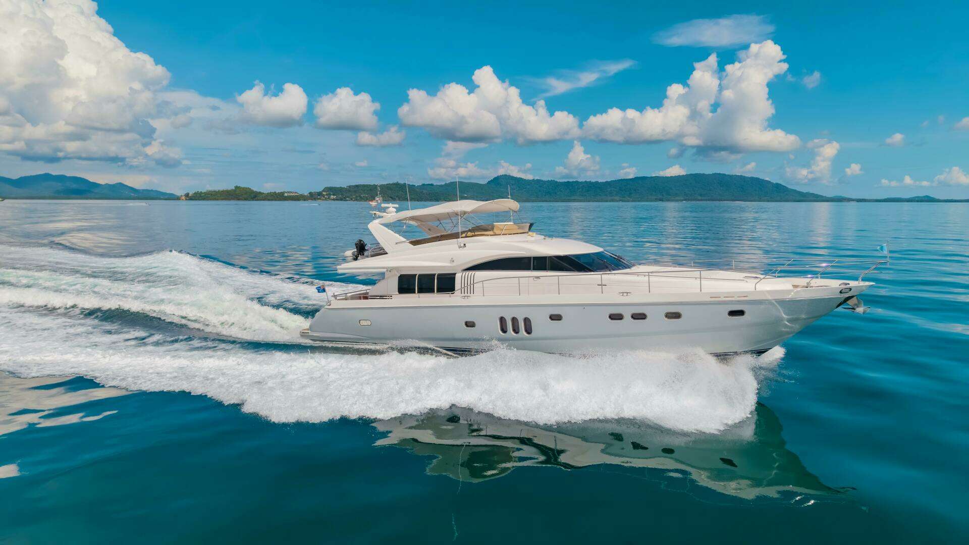 - Recent Upgrades: New teak decking (side decks, cockpit, flybridge), fresh gelcoat (2020), and a brand-new bimini top.