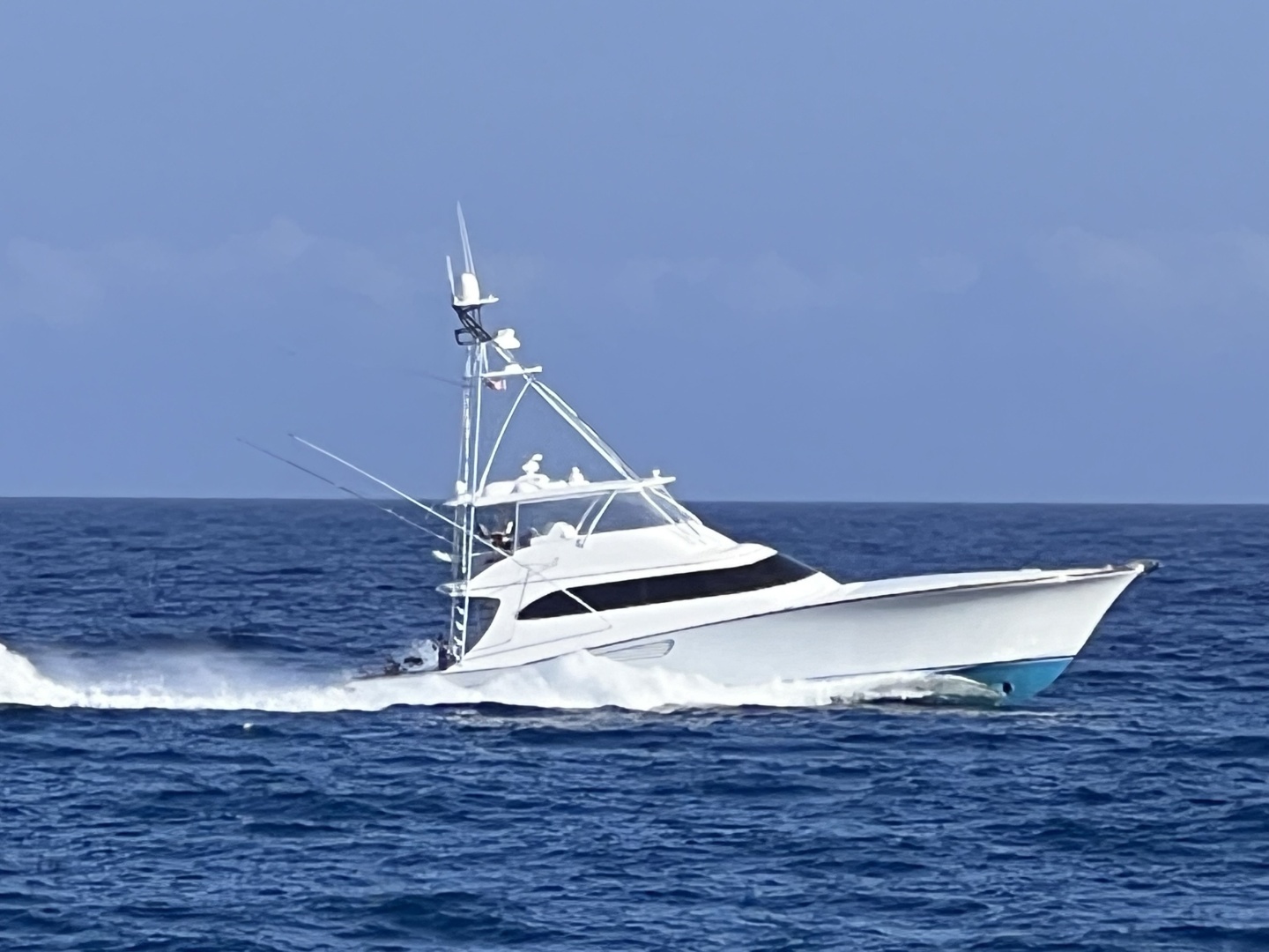 - Rod holders on aft tower legs, four port and four starboard