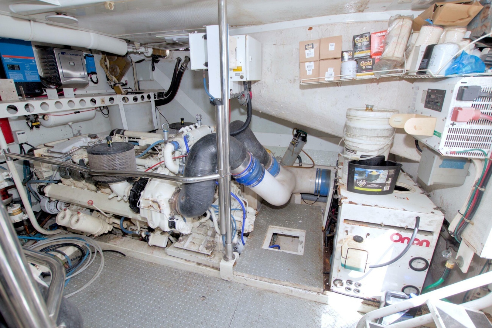 Powered by twin 1,150HP MTU diesels and equipped with twin 20kW Onan generators, this yacht is well-suited for long-range cruising with the systems and redundancy serious boaters expect. Bow thruster and advanced onboard monitoring systems make handling and operation straightforward.