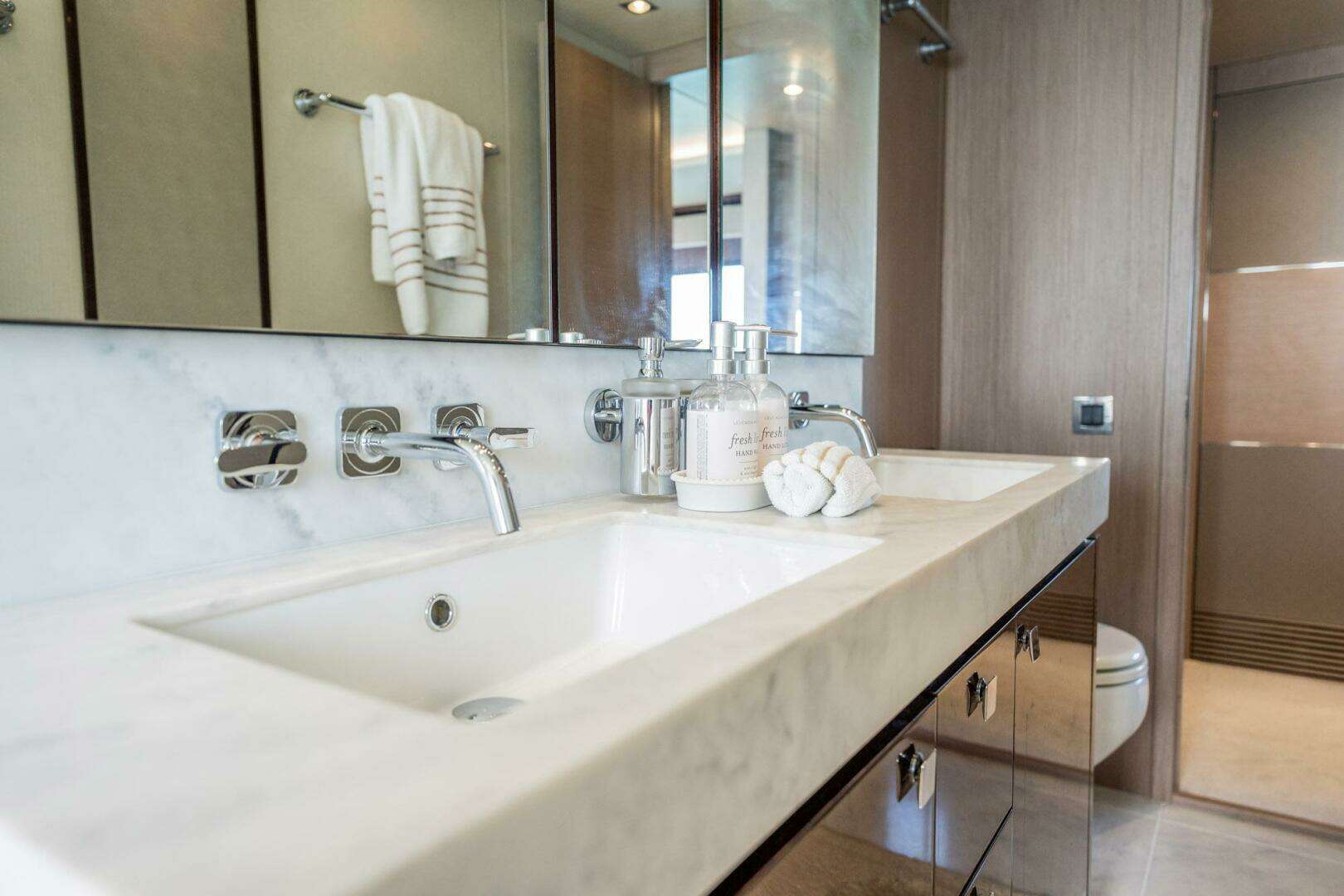 - Fully Equipped Galley: Miele appliances, wine cooler, and Sub-Zero refrigeration