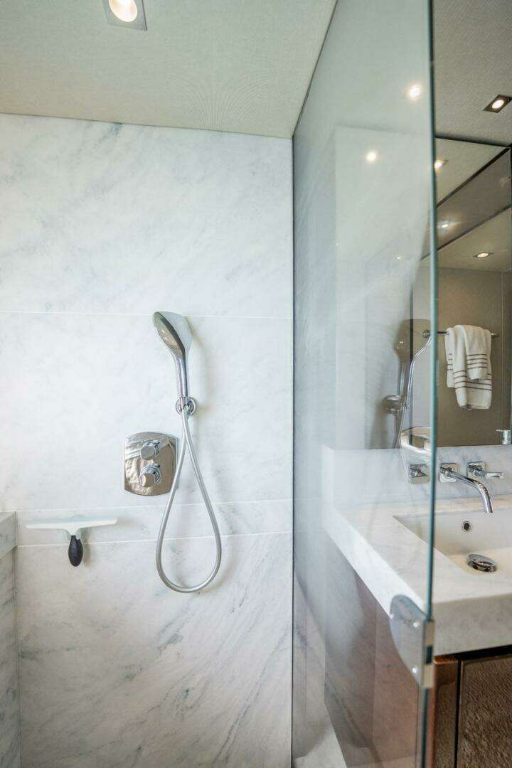 Add in Sleipner fin stabilizers with at-rest stabilization, dual proportional thrusters, and joystick docking, and you’ve got a yacht that’s easy to handle, comfortable at sea, and ready to impress.