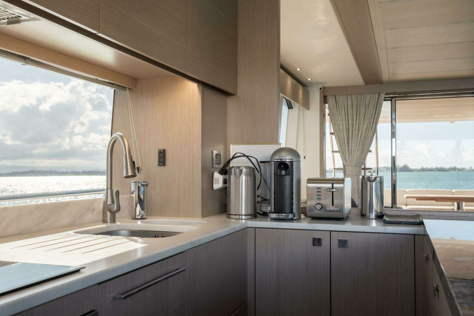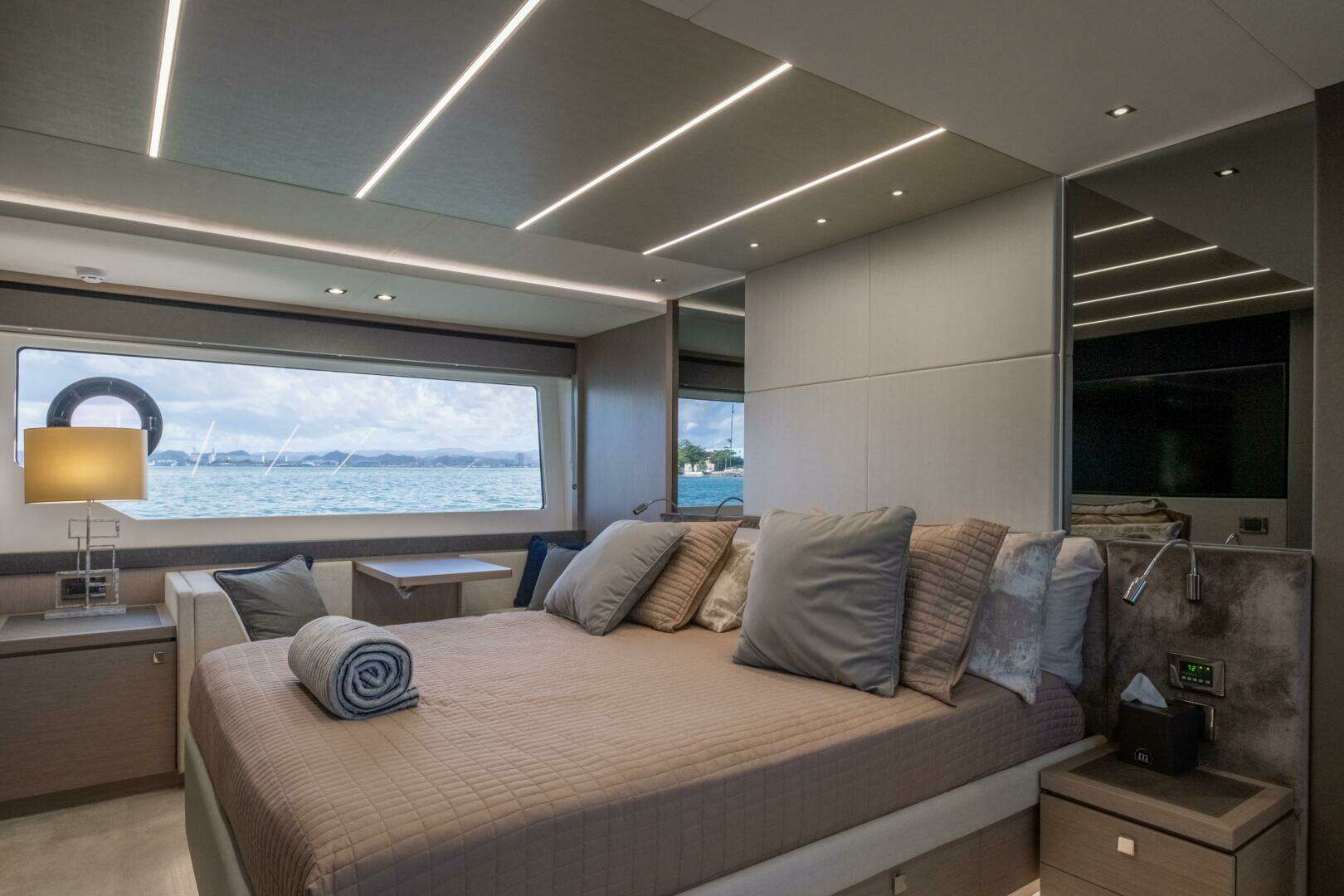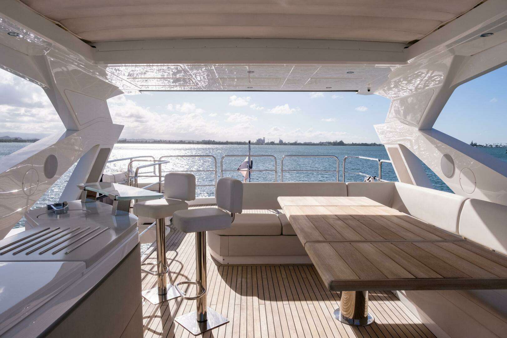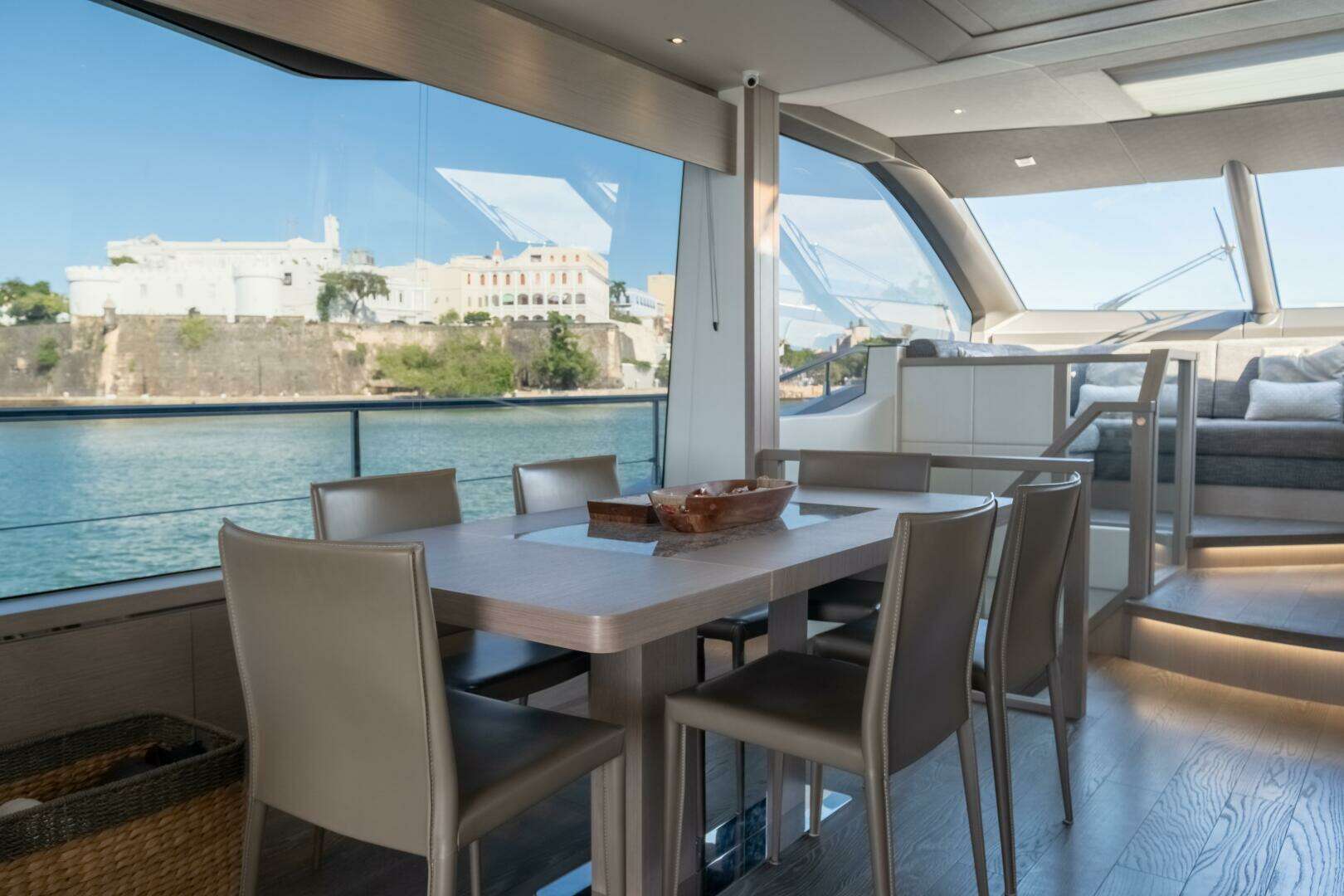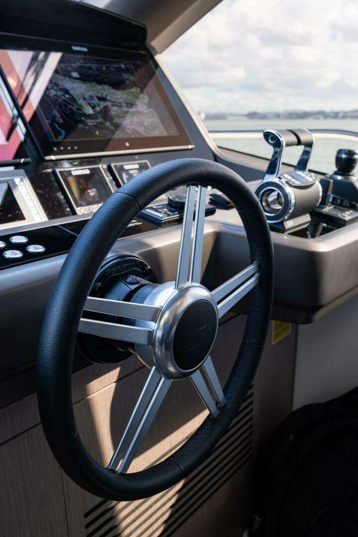 Not only does this model cut an impressive silhouette on the horizon, but an expanse of glass and sunlight also welcomes you onboard the 76 Yacht, and the main deck allows you to entertain with an almost 360-degree view of your surroundings. For ‘al fresco’ life, this flybridge yacht provides unprecedented levels of space and flexibility to suit owner needs.