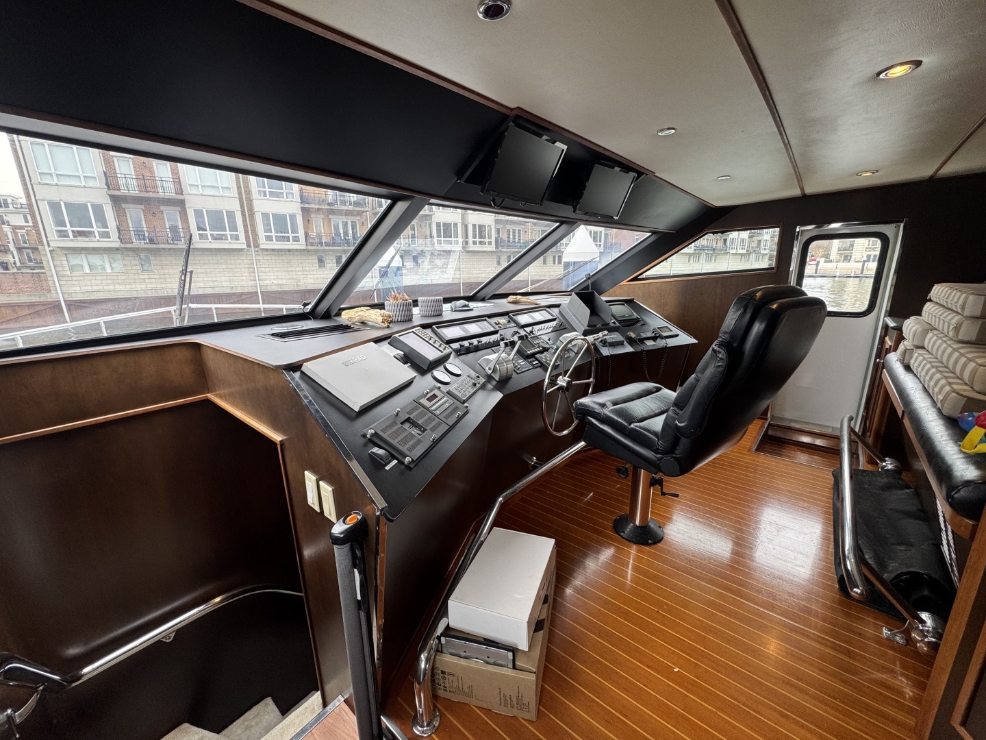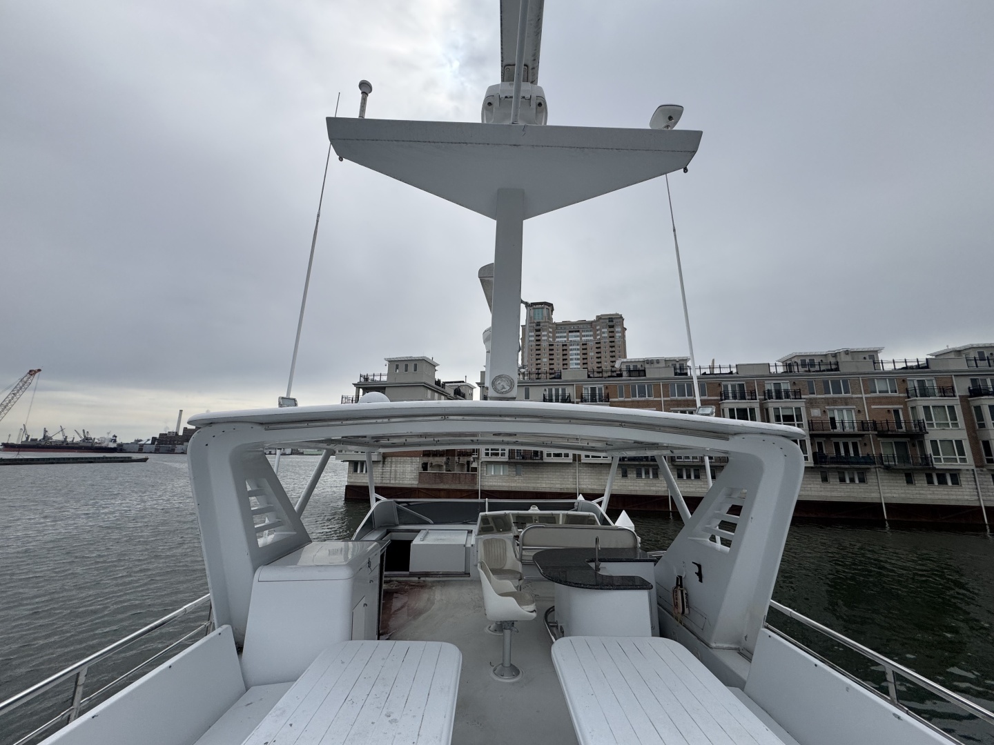 - Oversize fly bridge w/grill, wet bar, lots of seating