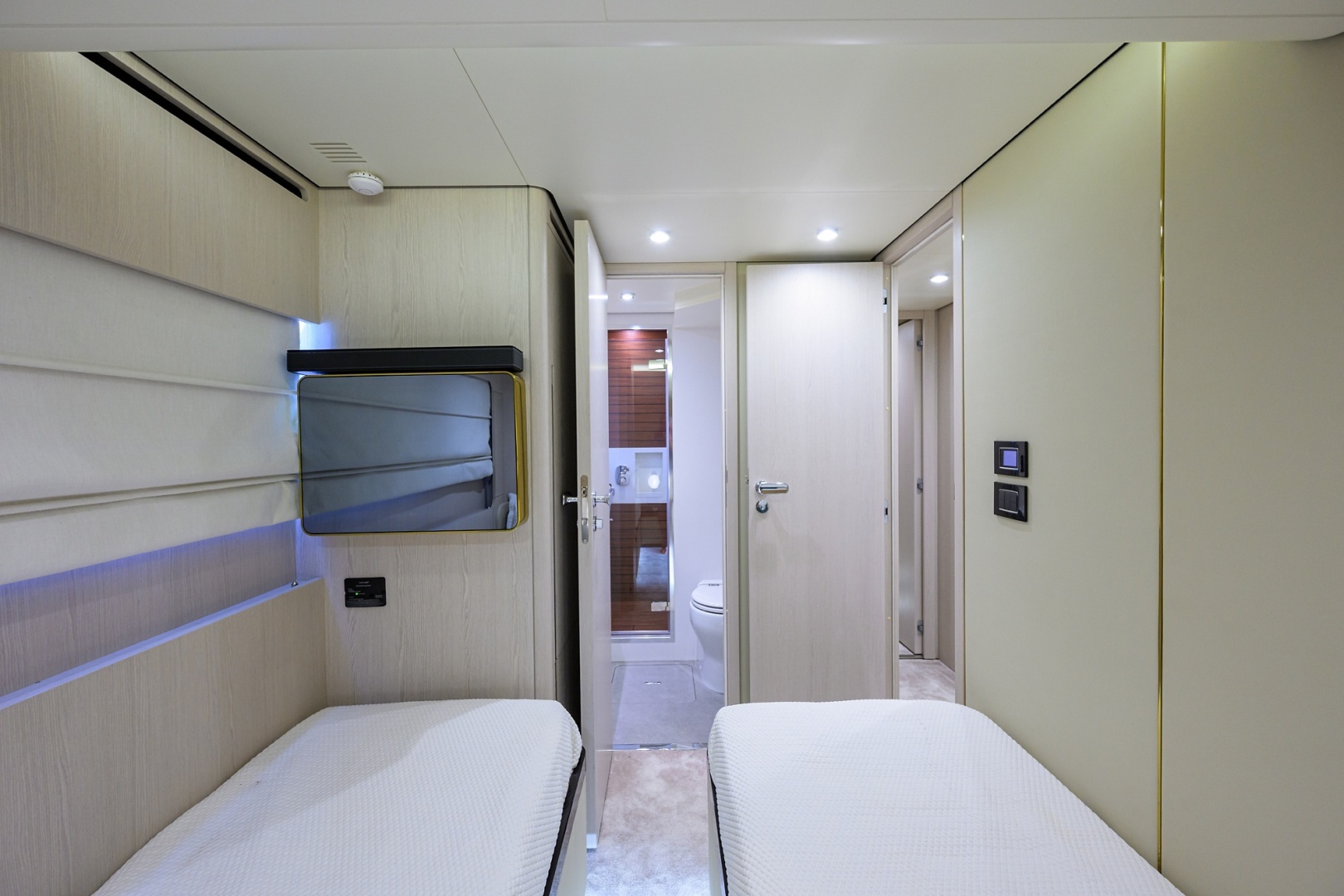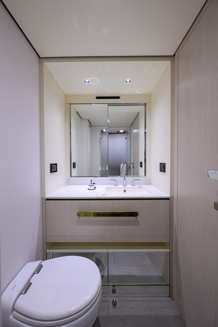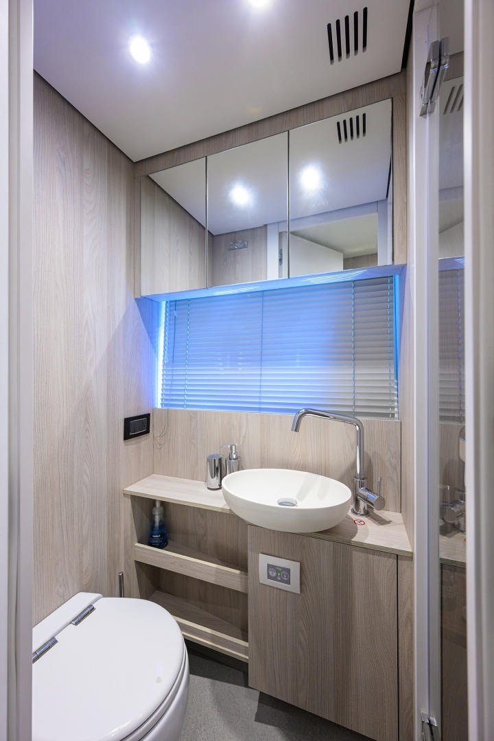- Starboard crew cabin with over/under berths • Dimmable LED lighting