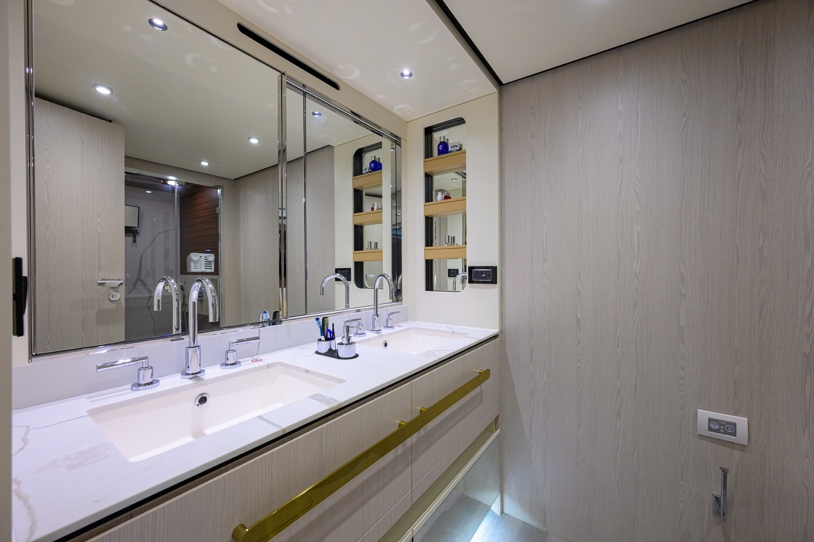 - Two 120/240 V - 50 A shore power sockets