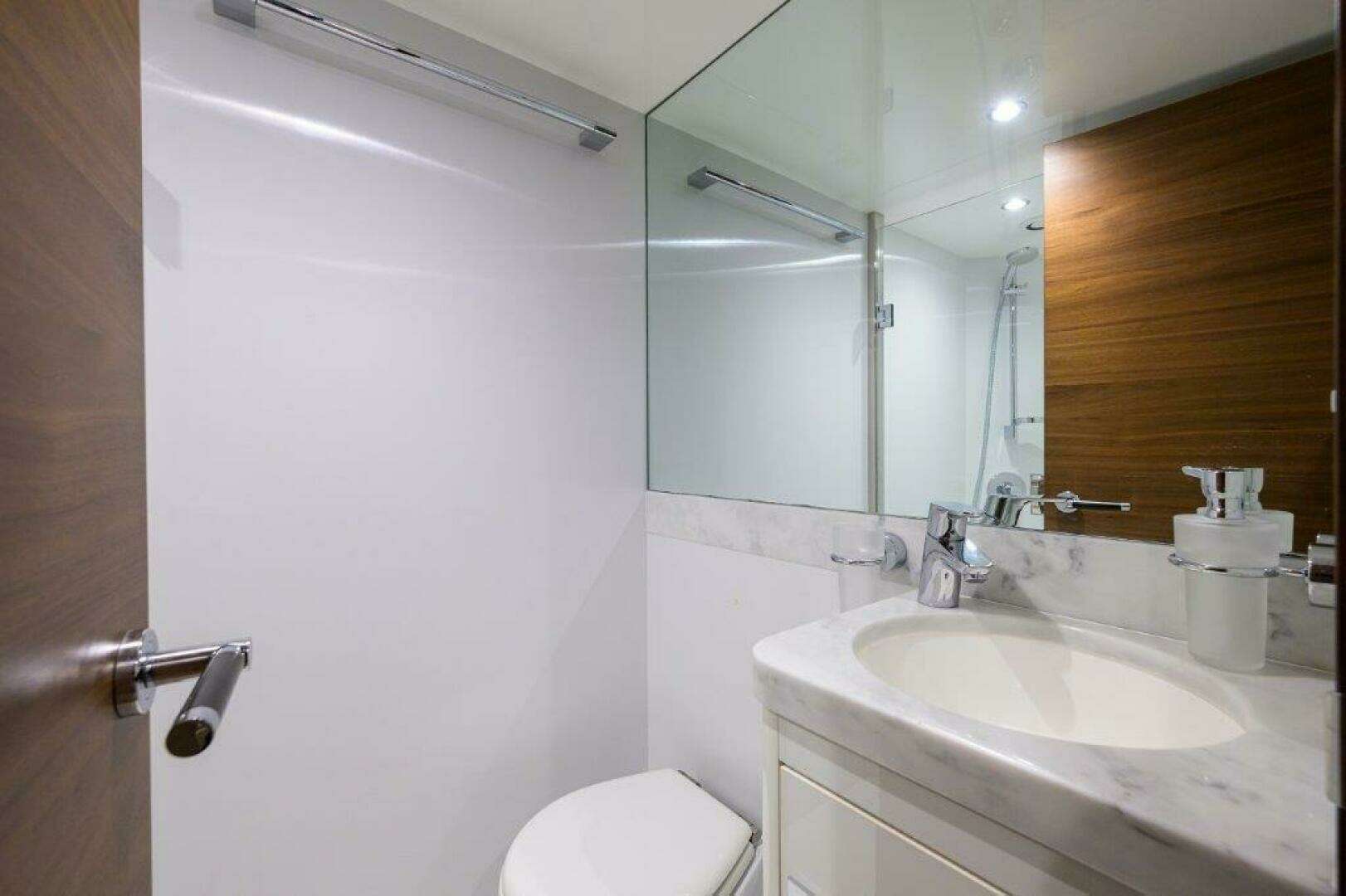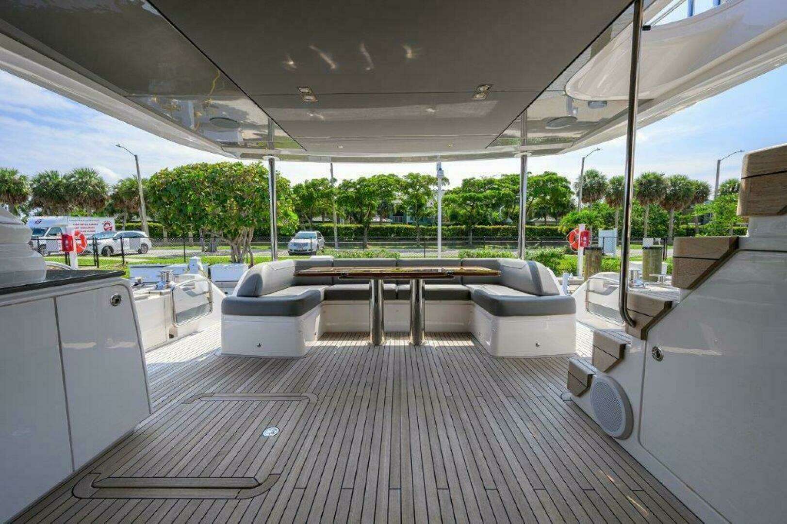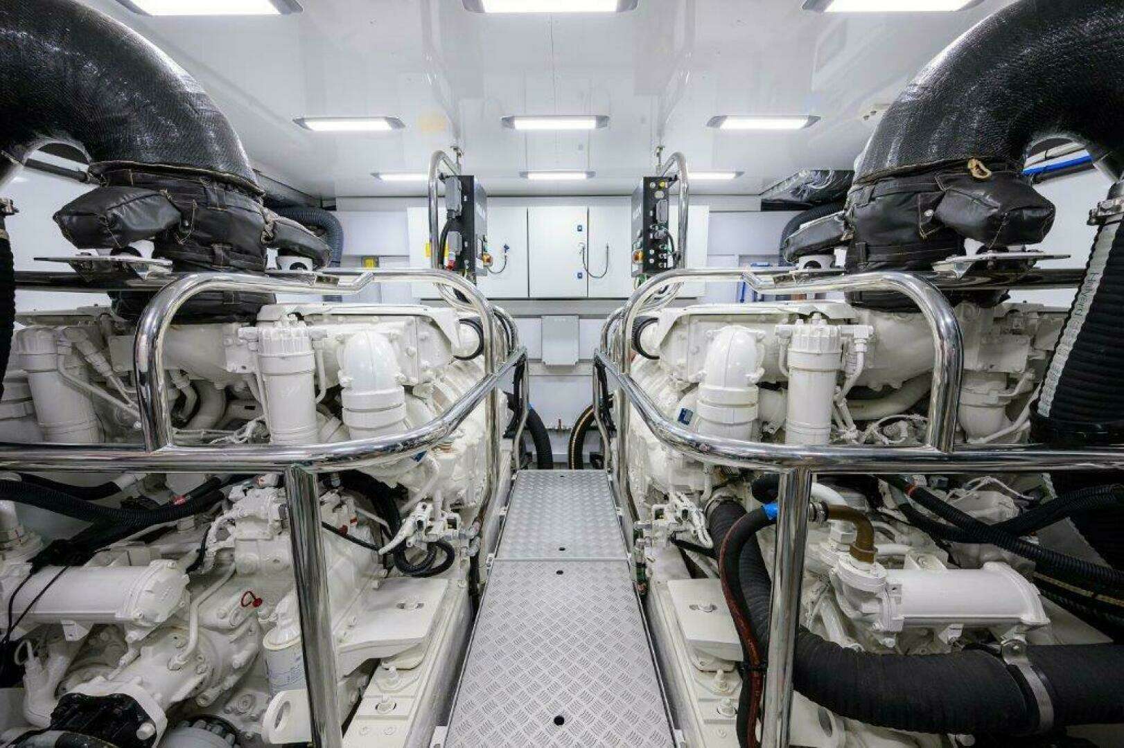 - Twin sunbeds aft with lazarette and garage with electro-hydraulic door and tender launch system with electric winch below (4.45m tender)