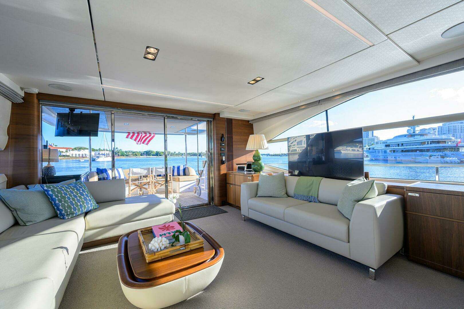 - Cockpit seating area: - Naim audio Uniti Atom system with Bluetooth, multi-zone streaming capability & paired with (2) Bowers & Wilkins waterproof speakers, fixed mount TV