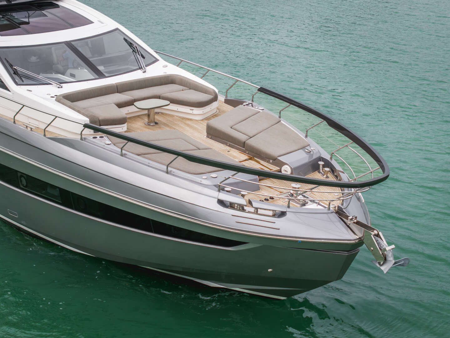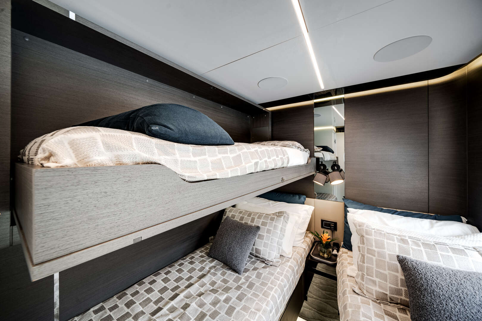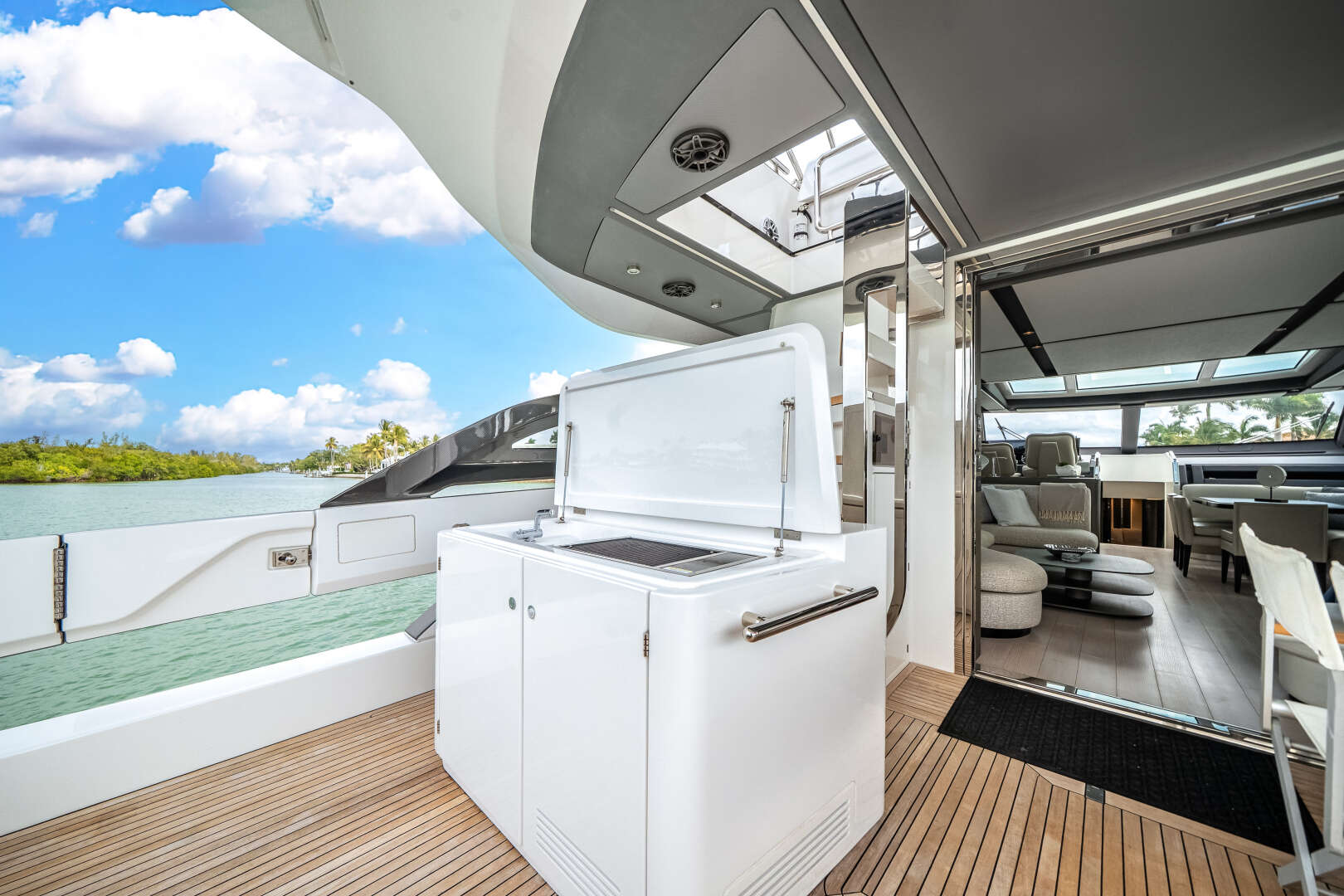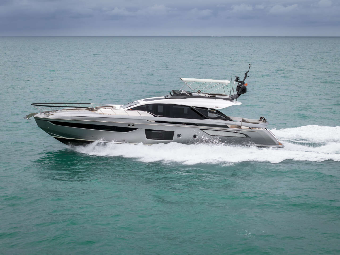 Her sleek profile is matched by a beautifully appointed interior featuring four luxurious staterooms, expansive salon, and seamless indoor-outdoor living spaces. A spacious cockpit, sun-filled bow lounge, and convertible beach club with tender garage make the S8 ideal for entertaining and extended cruising alike.