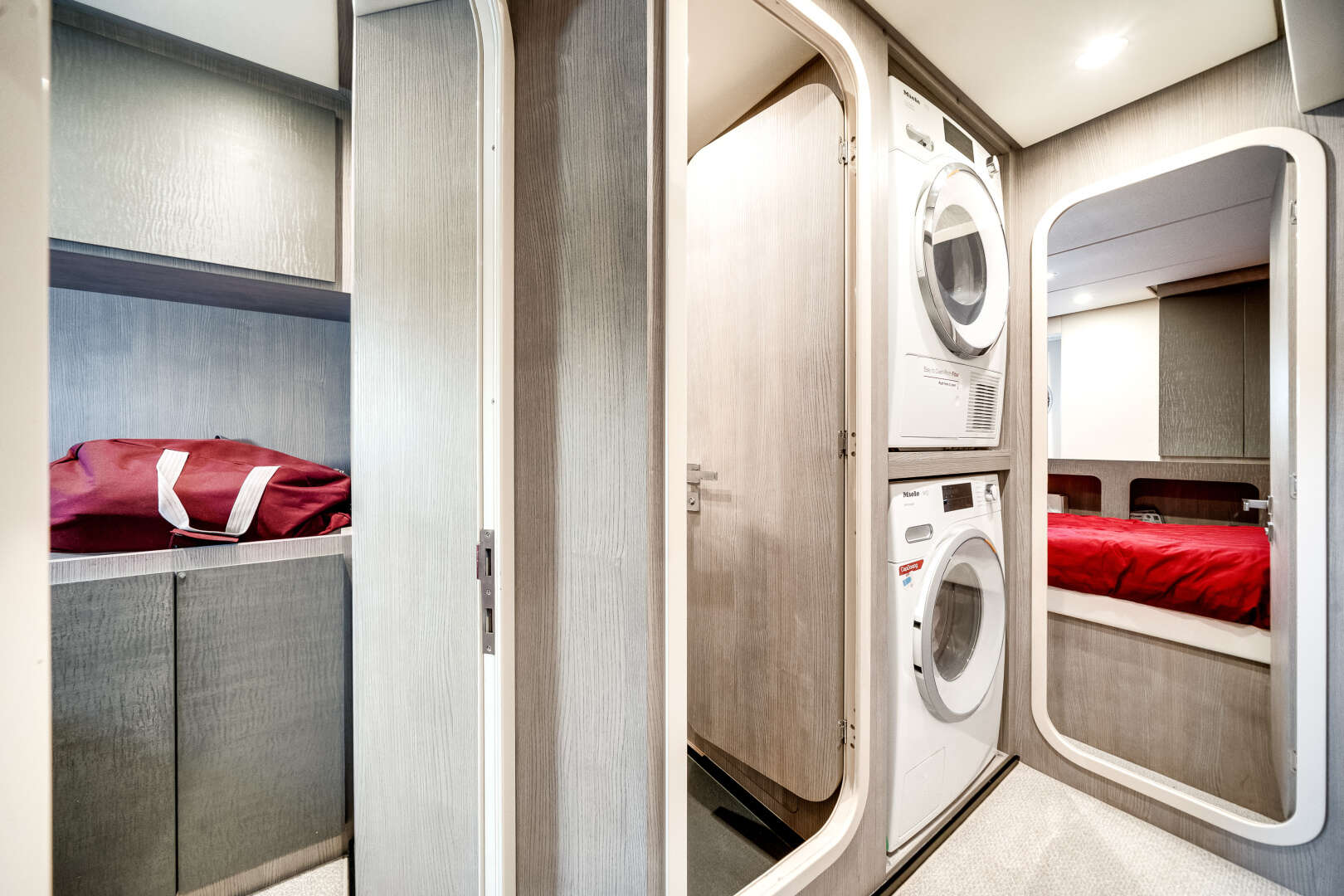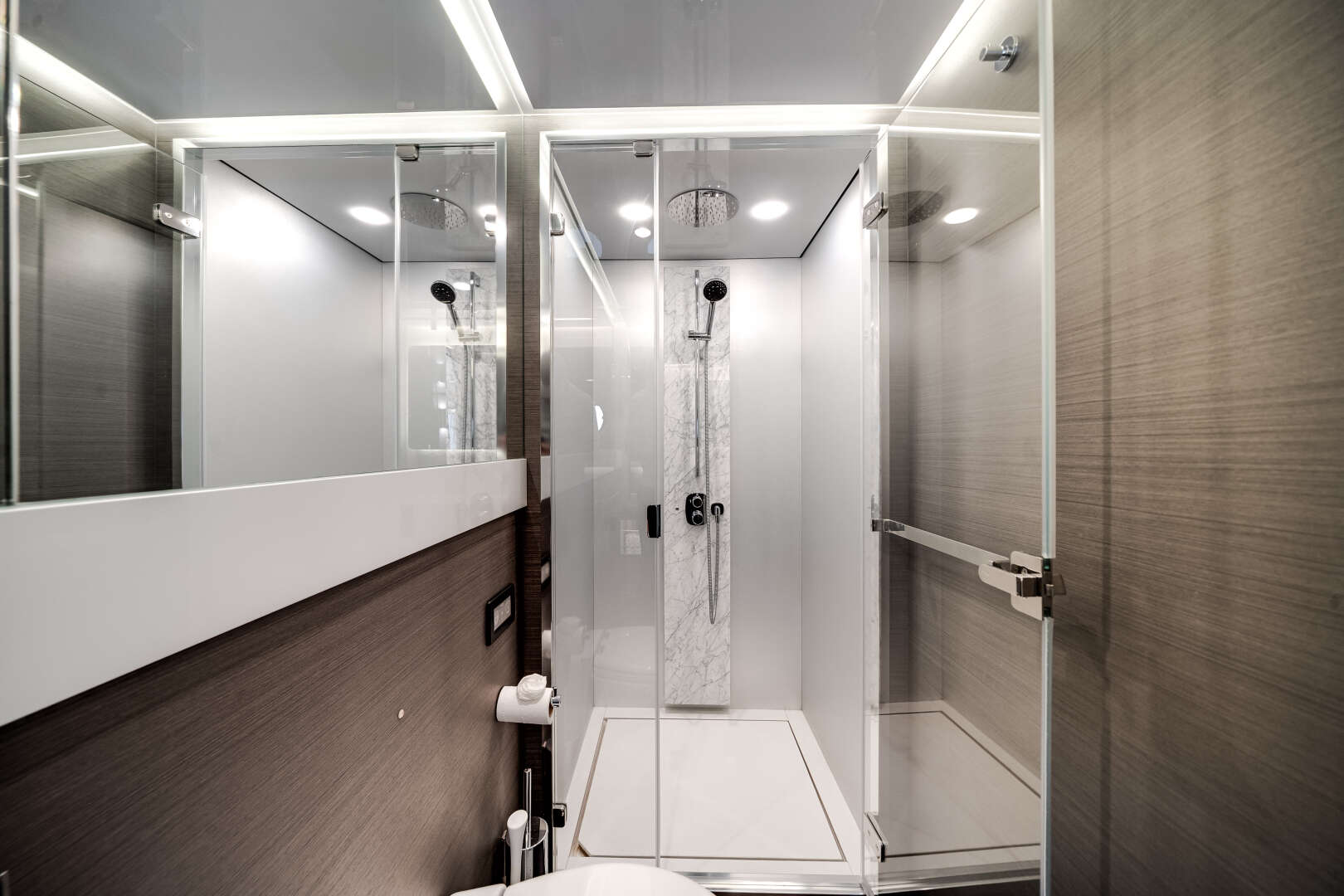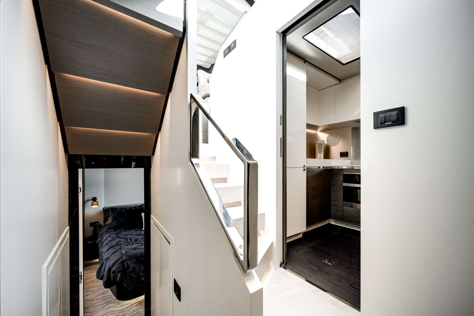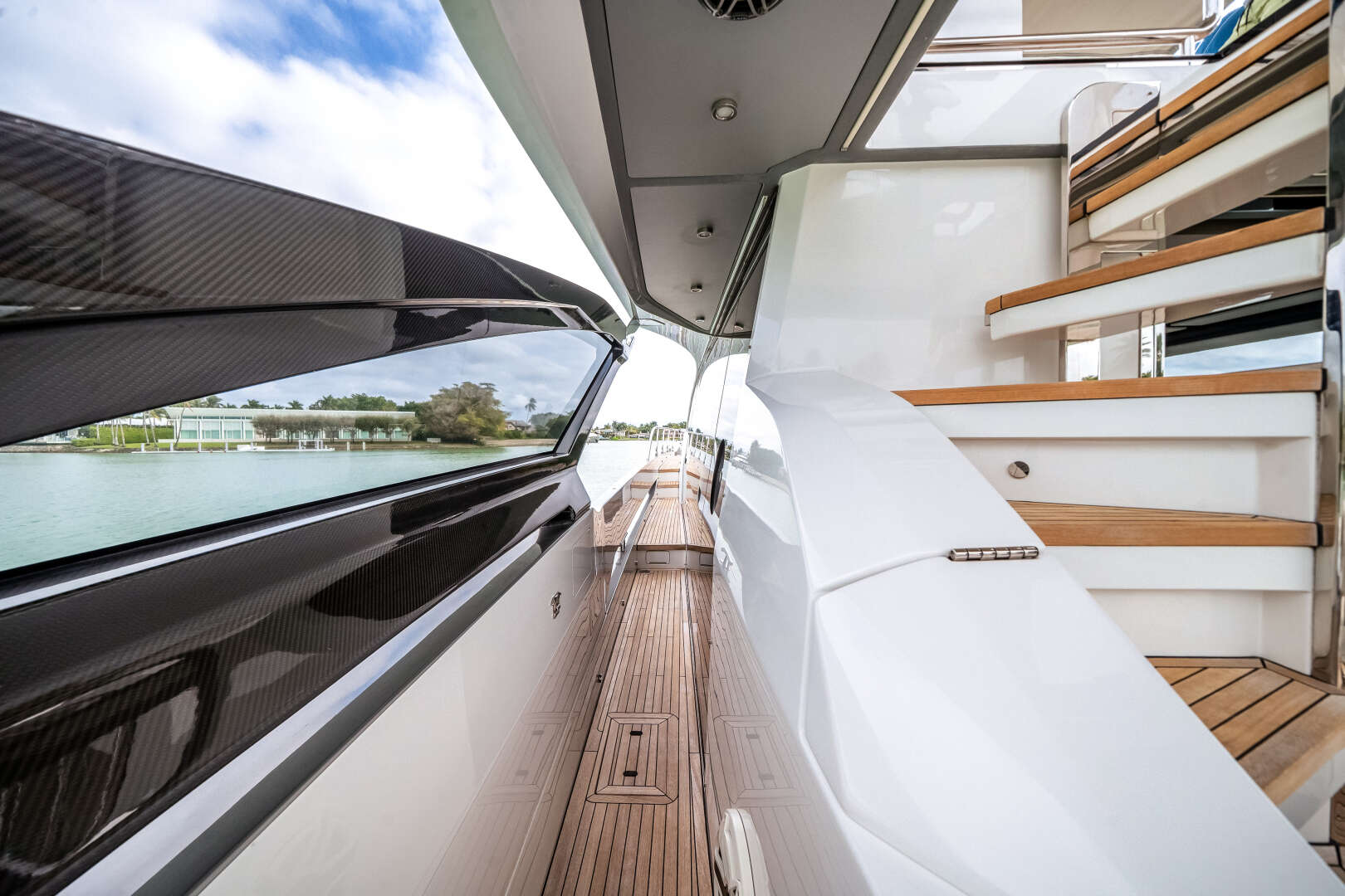 Her sleek profile is matched by a beautifully appointed interior featuring four luxurious staterooms, expansive salon, and seamless indoor-outdoor living spaces. A spacious cockpit, sun-filled bow lounge, and convertible beach club with tender garage make the S8 ideal for entertaining and extended cruising alike.