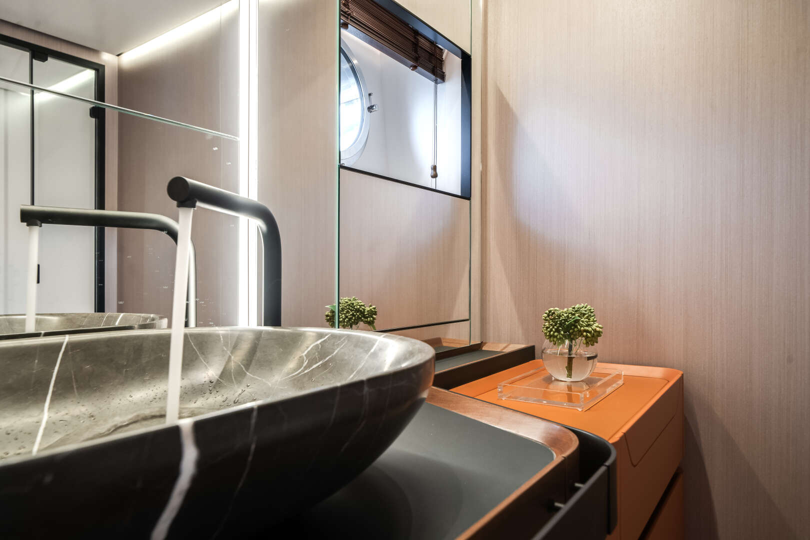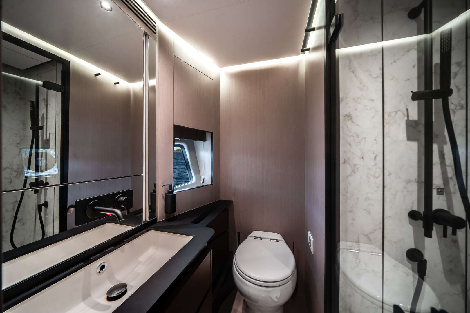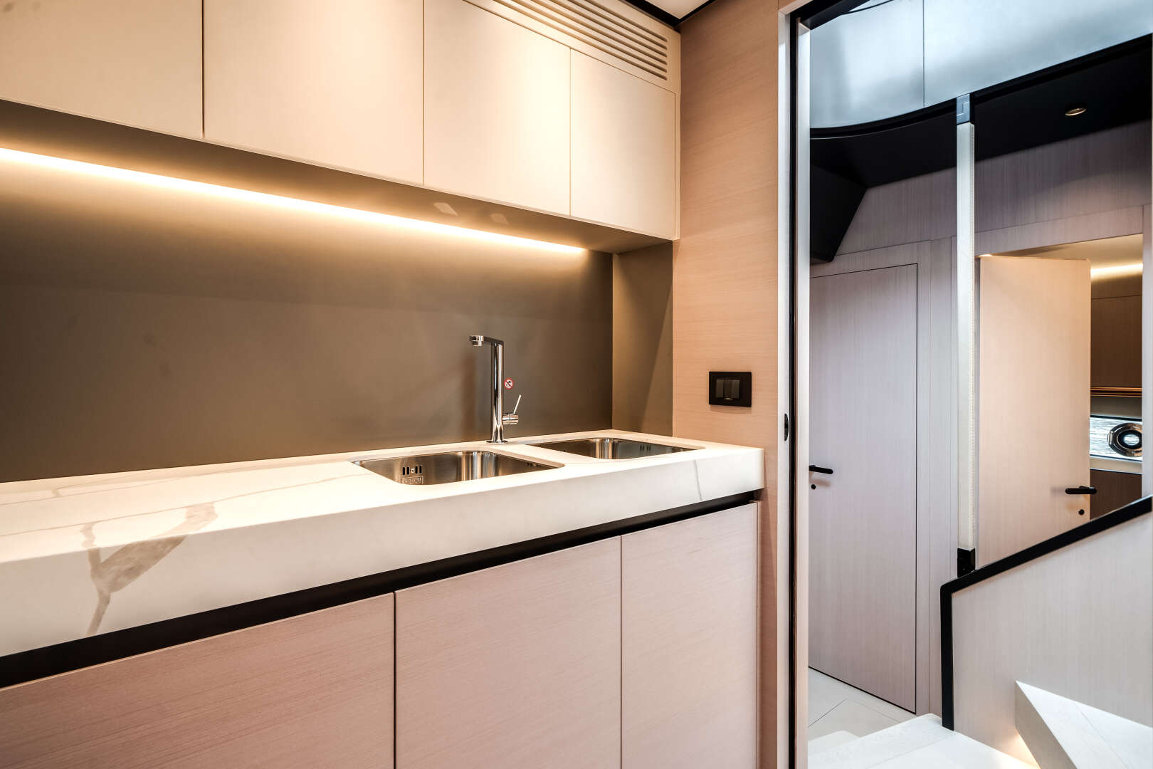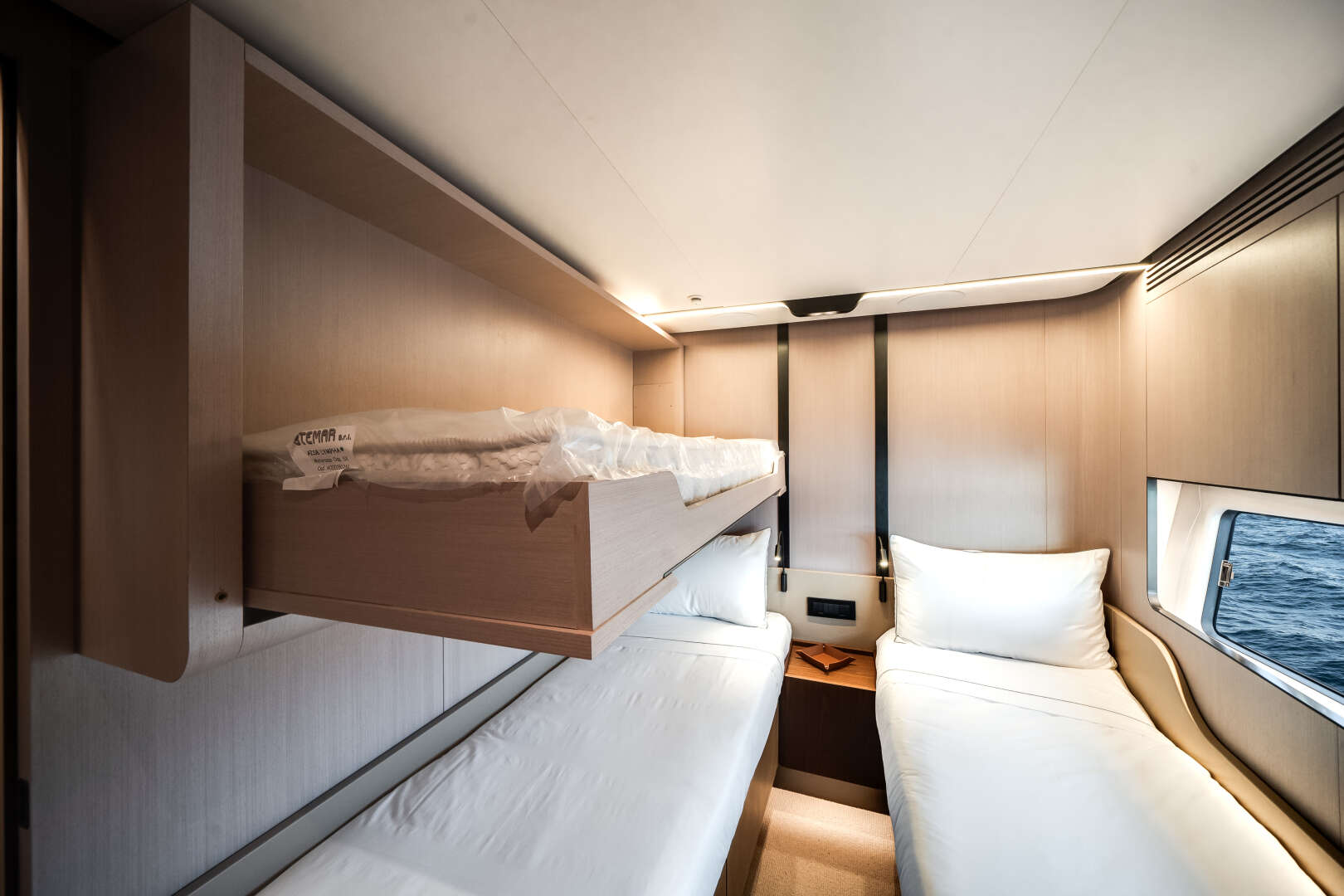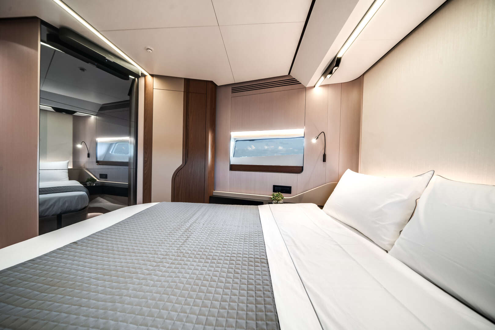 Exterior lines by Alberto Mancini capture the yacht’s aggressive yet graceful spirit, while interiors by Achille Salvagni introduce a modern, refined atmosphere where every curve and texture is designed for harmony. Expansive windows bathe the salon and staterooms in natural light, creating a seamless connection between sea and sky.