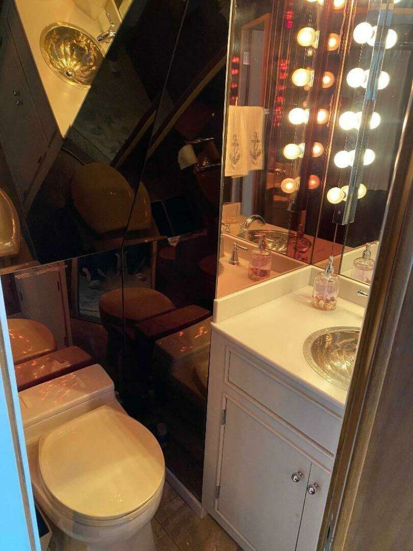 The master stateroom is aft and is also a full beam design with two large separate heads, one with a bathtub and one with a shower stall. The master stateroom also features two cedar-lined closets and tons of drawer space along with drawers under the King size walk-around bed.