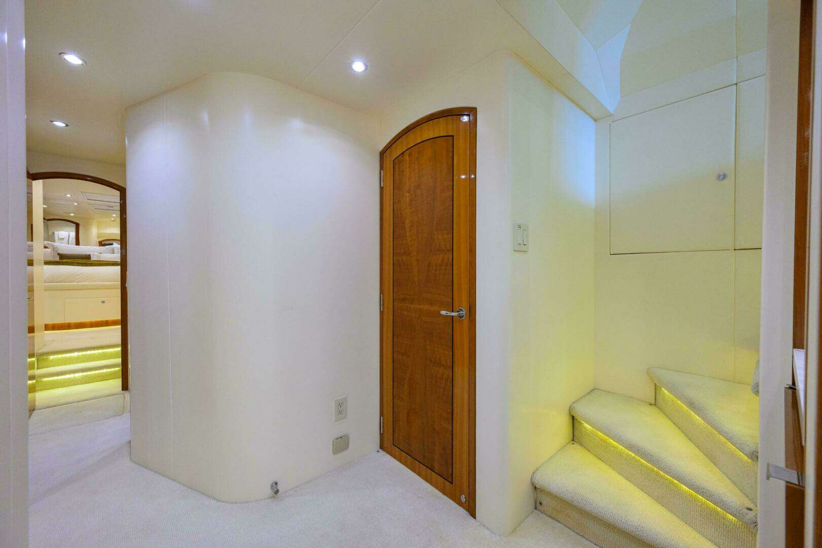 MONTE CRISTO is a highly customized, contemporary Open Bridge Hatteras featuring the preferred four-stateroom layout. Her interior showcases high-gloss cherry joinery, a forward galley with dinette, and a luxurious His & Her marble master bath.