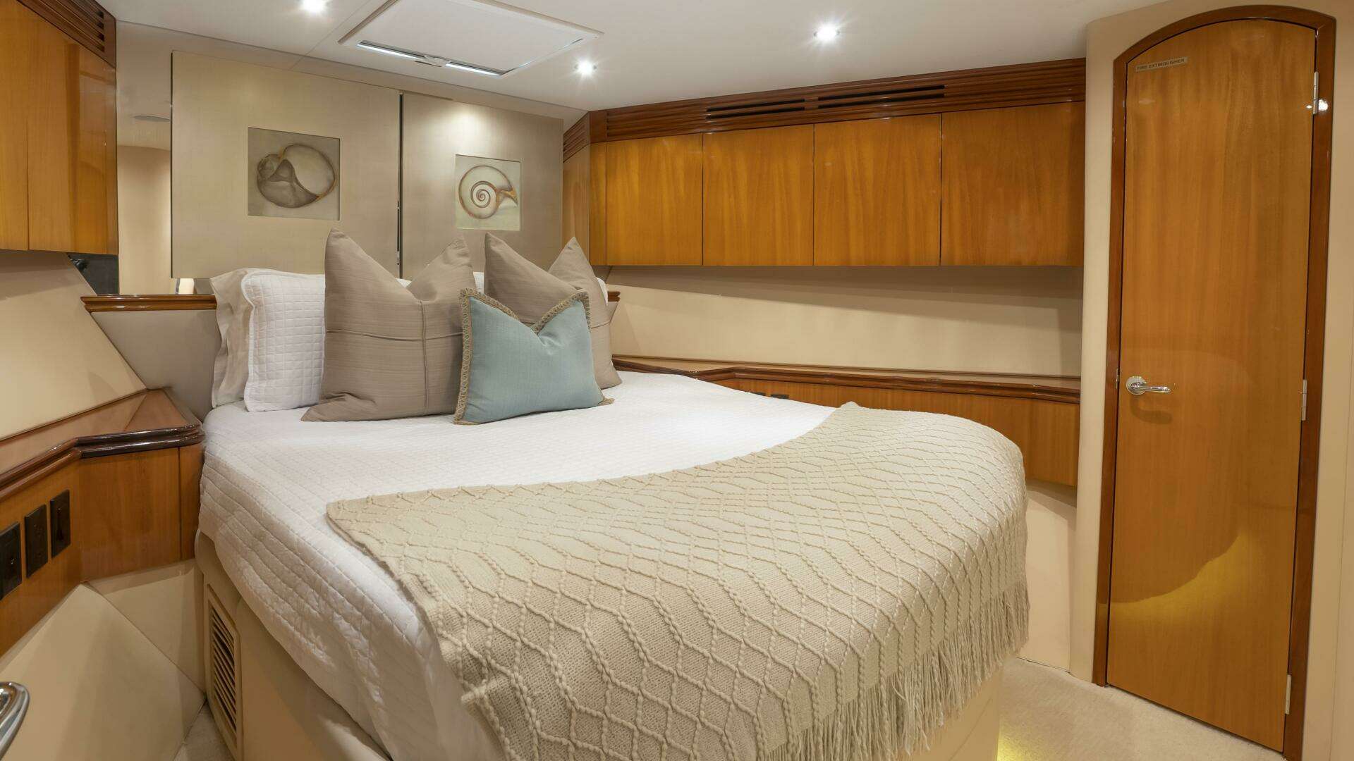 Stepping inside, Gallopin reveals a sanctuary of fine craftsmanship. Satin-finished cherry joinery, custom stone surfaces, and rich leather furnishings create an atmosphere of timeless refinement. The full-beam salon flows seamlessly into a formal dining area and gourmet galley — perfect for entertaining guests in understated elegance.