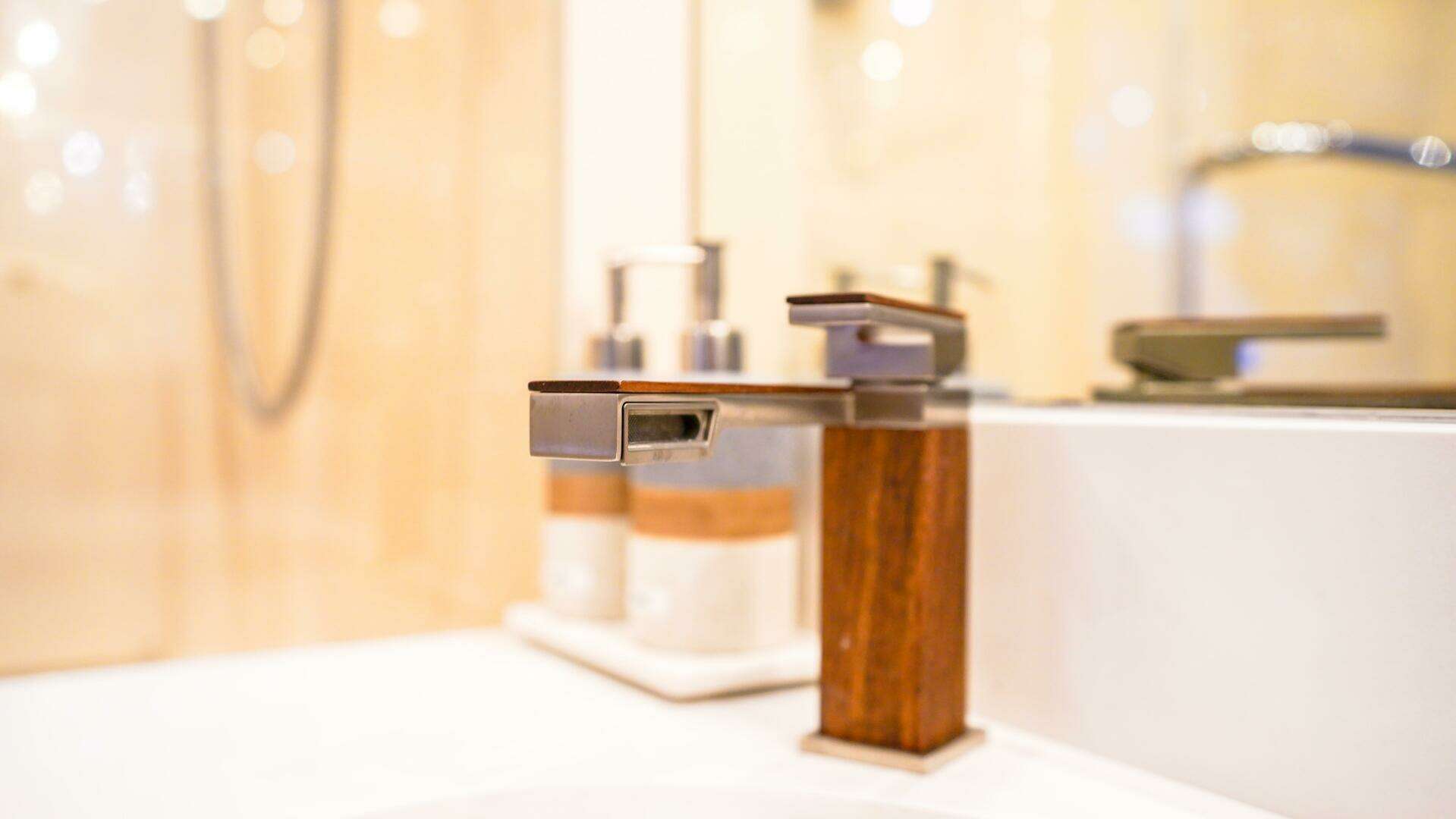 Bathroom Totally Transformed - New Floor Tiles, Shower (Bathtub Removed), Teak Faucets, and Countertops
