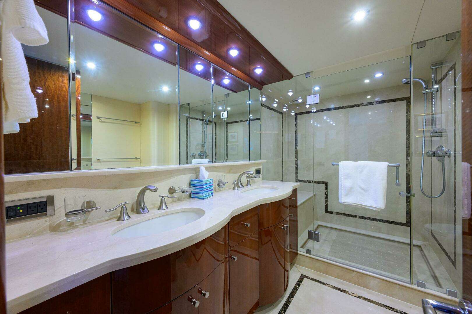 WILLYN not only is a one-of-kind but she also utilizes the finest components available. From the CAT C-32s to the dual Onan 27.5 generators to the TRAC stabilizers this yacht comprises the most premium equipment available. And since she has been captain maintained from launch WILLYN is perfectly ready for her summer Caribbean cruise.