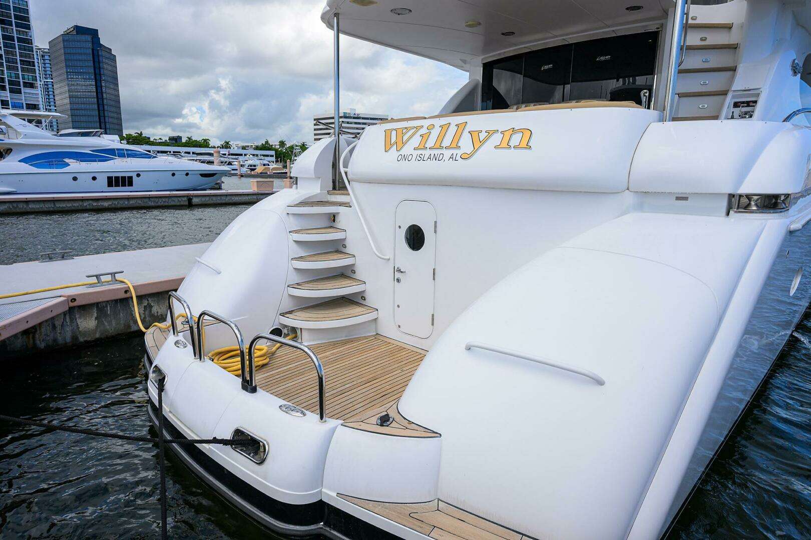 WILLYN (a 2007 Lazzara 80 Skylounge) is truly a one-of-a-kind Lazzara. As a 2007 model she is the latest model year Lazzara 80 you can buy. Having undergone a complete paint job (2016) and new interior décor (2015) she shows exceptionally well. Furthermore with her walk around main decks, Skylounge flybridge and dual transom personal watercraft storage, this is a yacht that has never been duplicated.