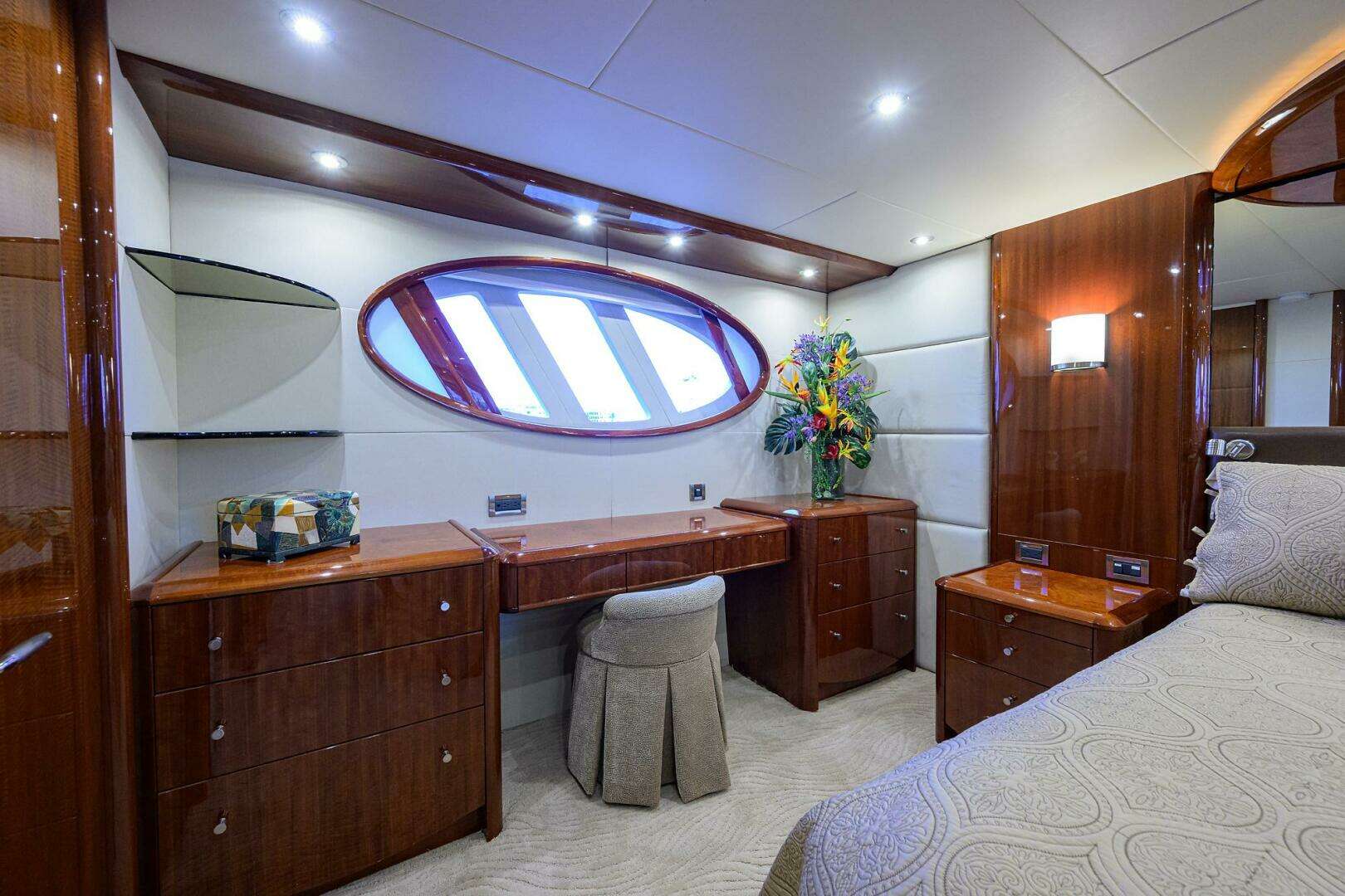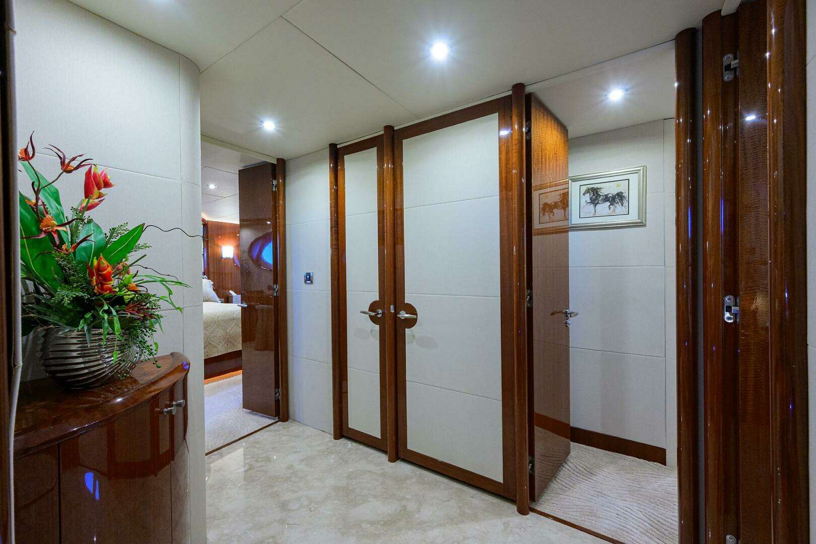 - Makore cherry credenza on mirrored forward bulkhead
