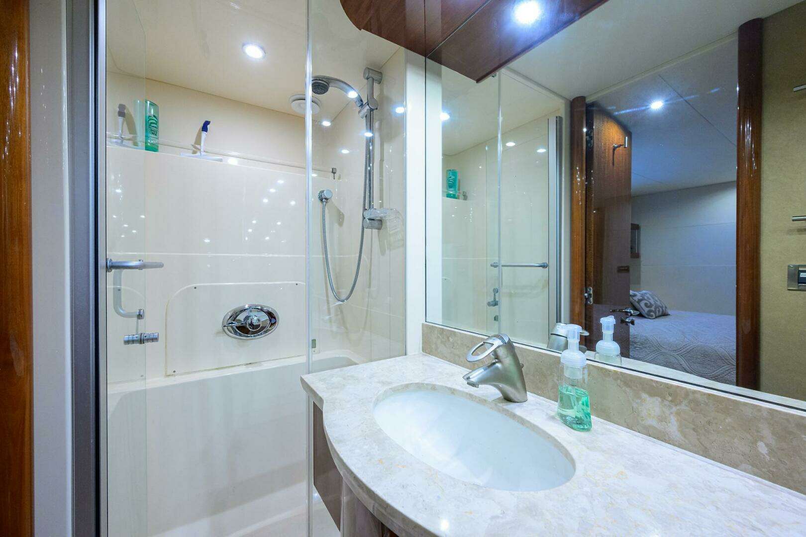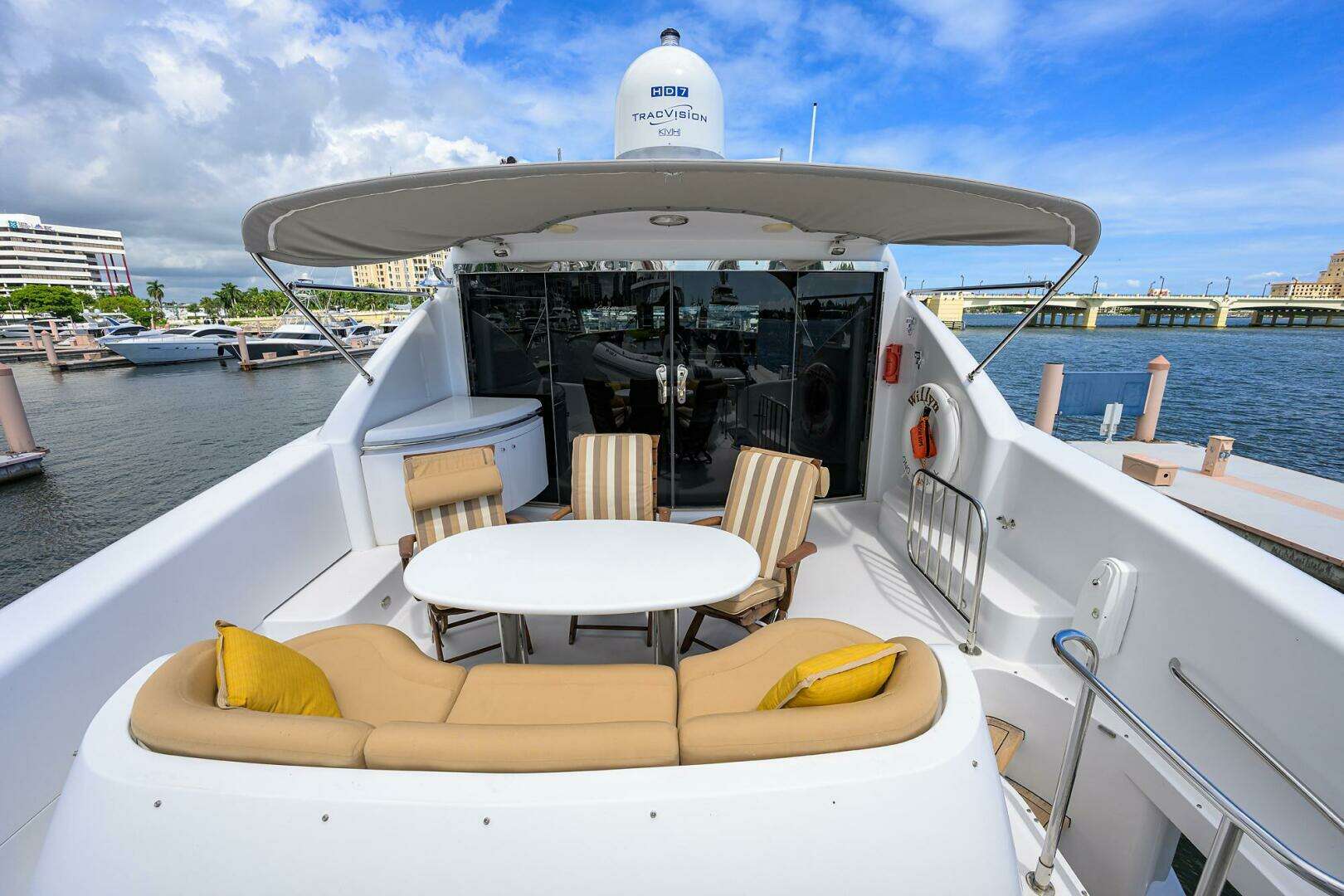 - Double stainless steel curved sliding glass doors to aft deck