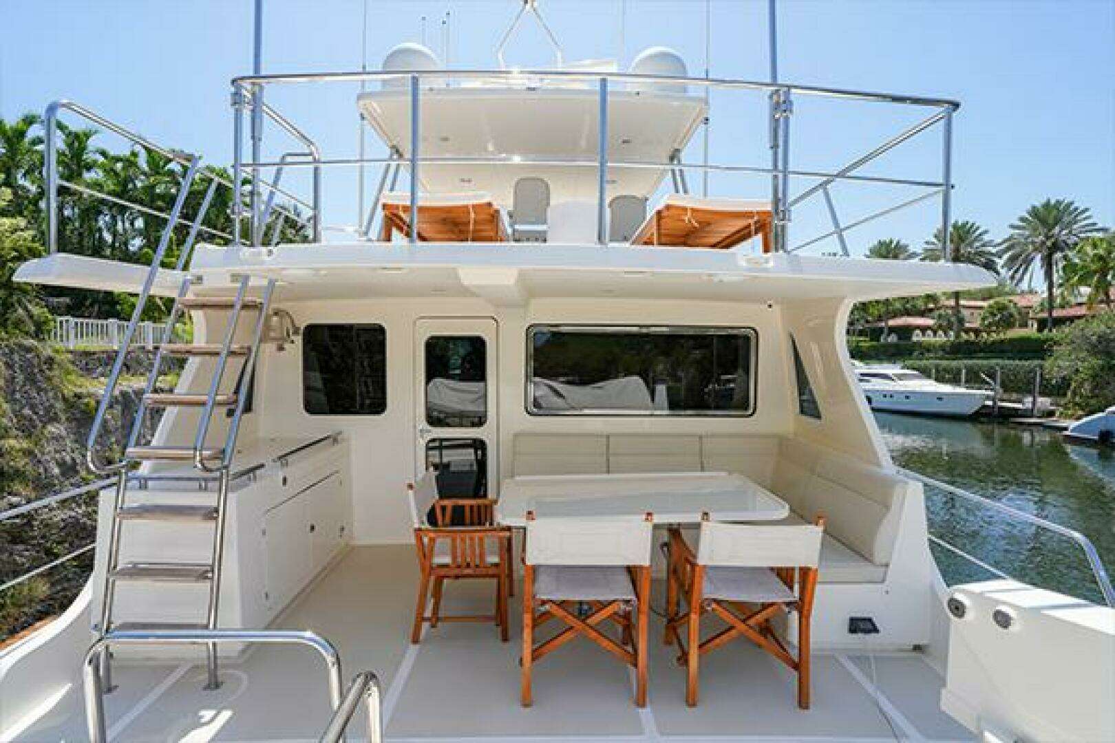 The lazarette has great storage space, two sound-shielded equipment rooms which house the generators, and a full-sized laundry area. The Seakeeper Gyro is located under the aft stairs, and there is natural lighting from the exterior windows. The large hydraulic assisted transom door makes it easy to move gear and equipment in and out when at dock, or at anchor.