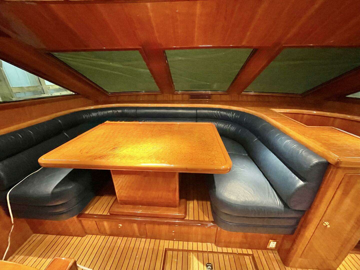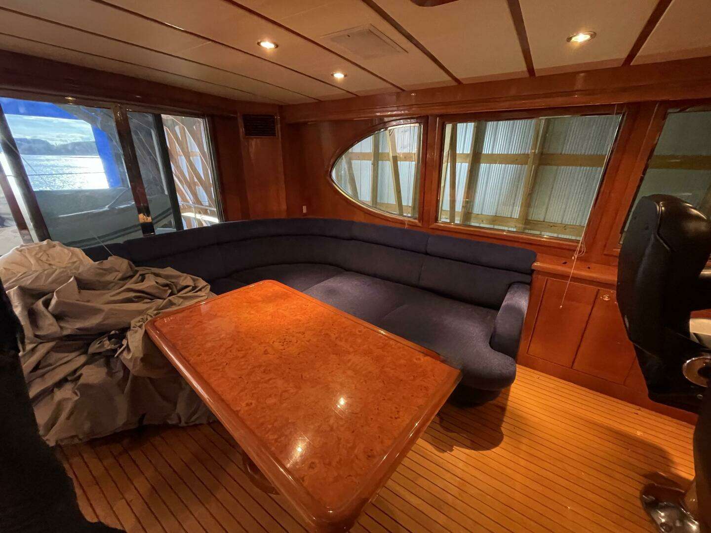 - Flybridge skylounge with L-settee, helm seat & wet bar