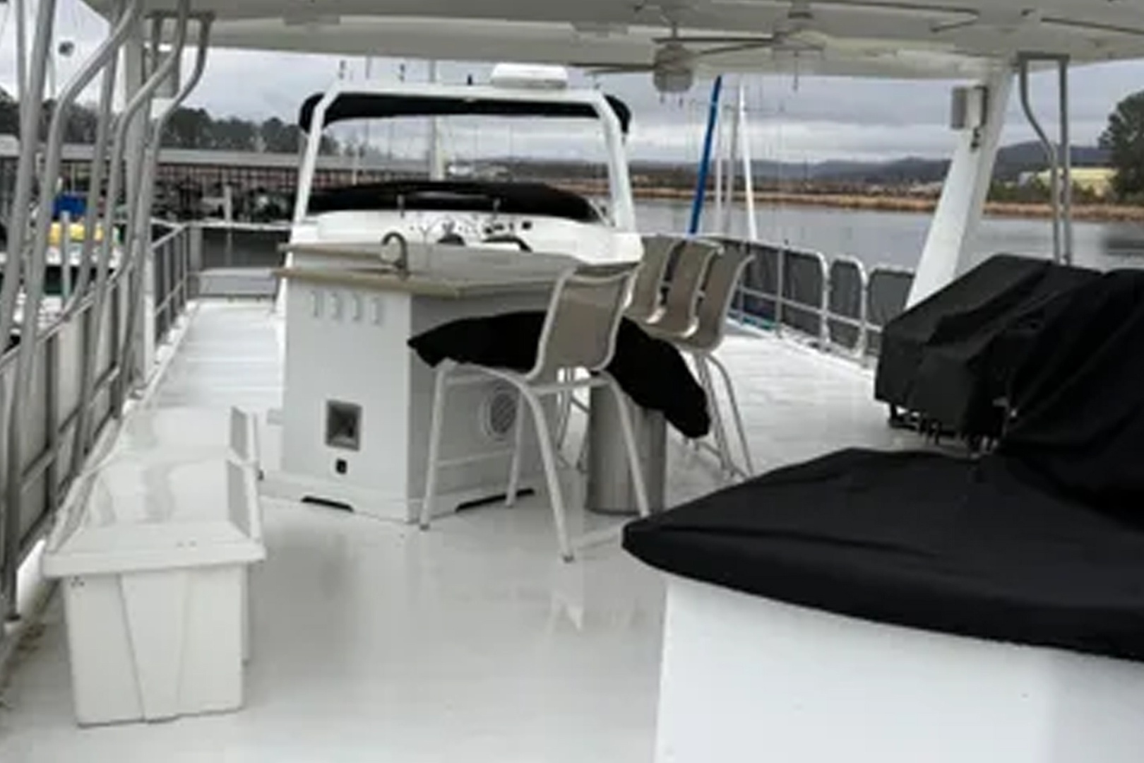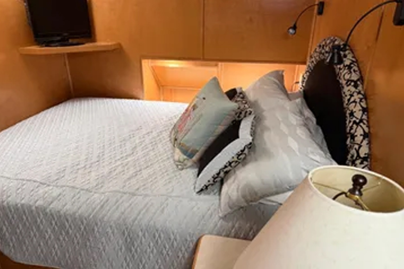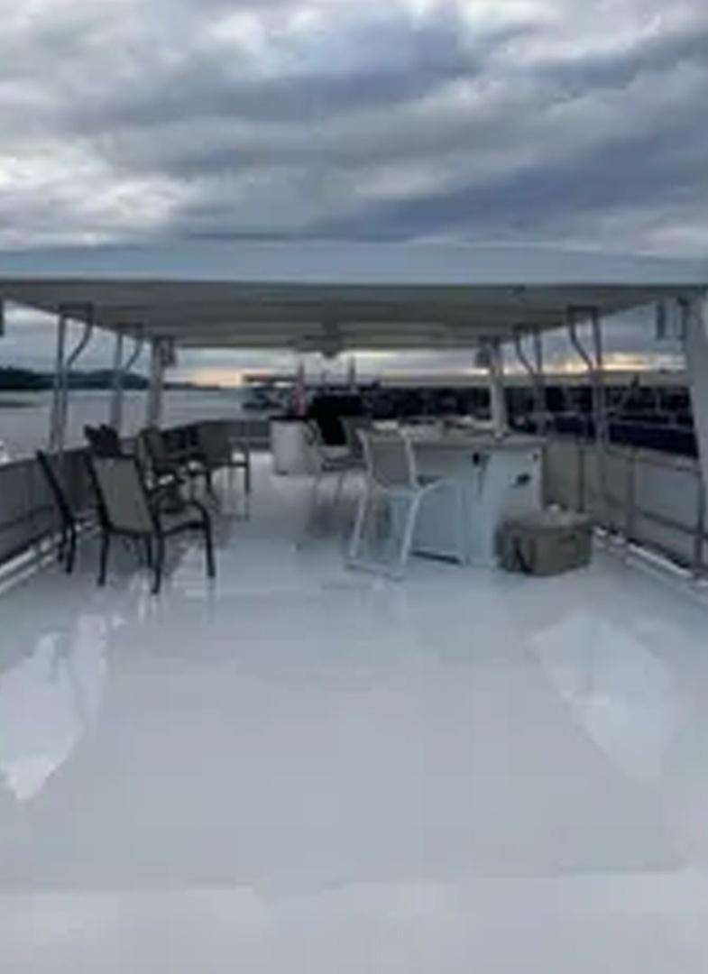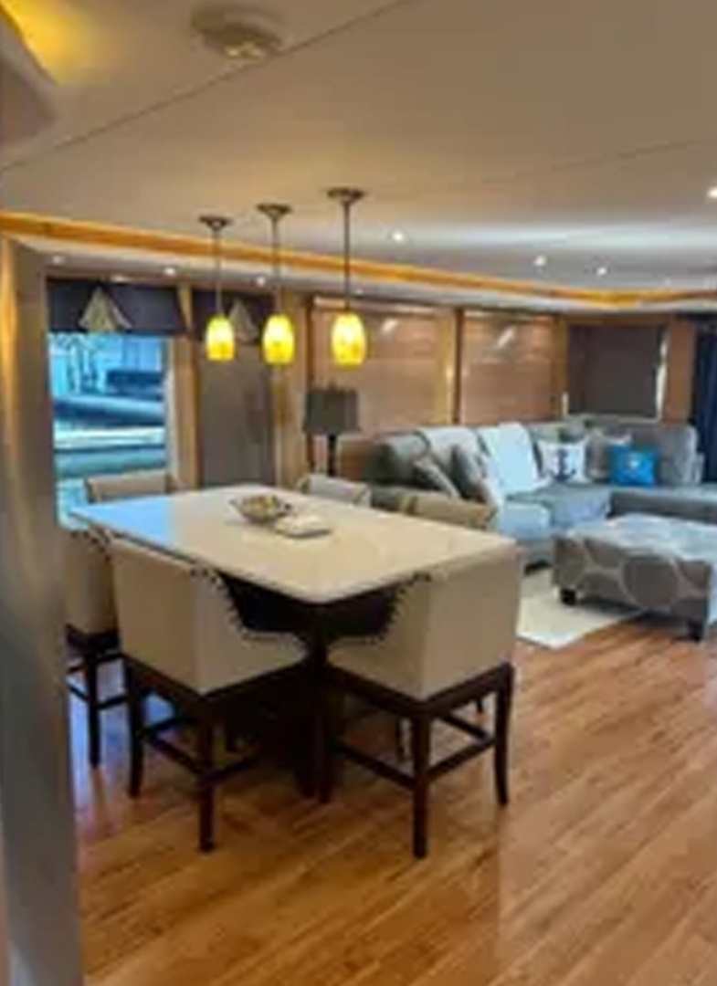 Updated and plenty of room for family and friends. Four staterooms and 2 full heads. Large galley/dining area with more than enough storage cabinets Under floor storage for bulk items and supplies Large salon area with L shape sofas and large screen for TV and family movie night. Large storage