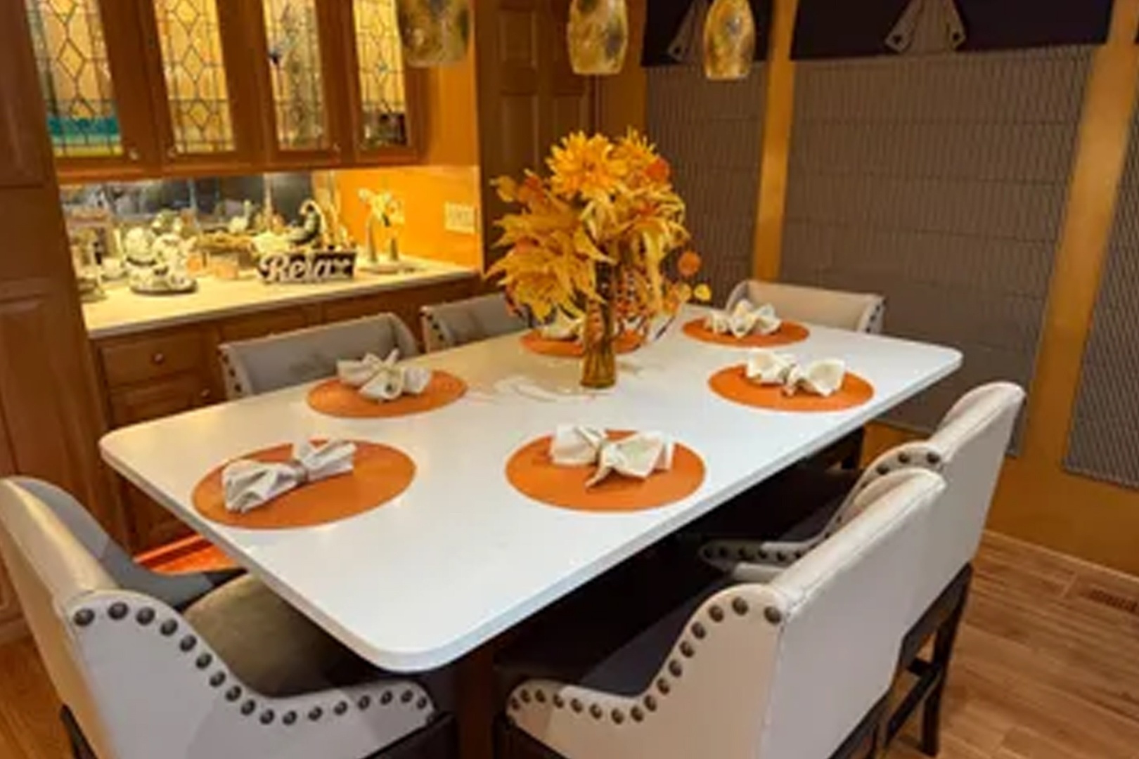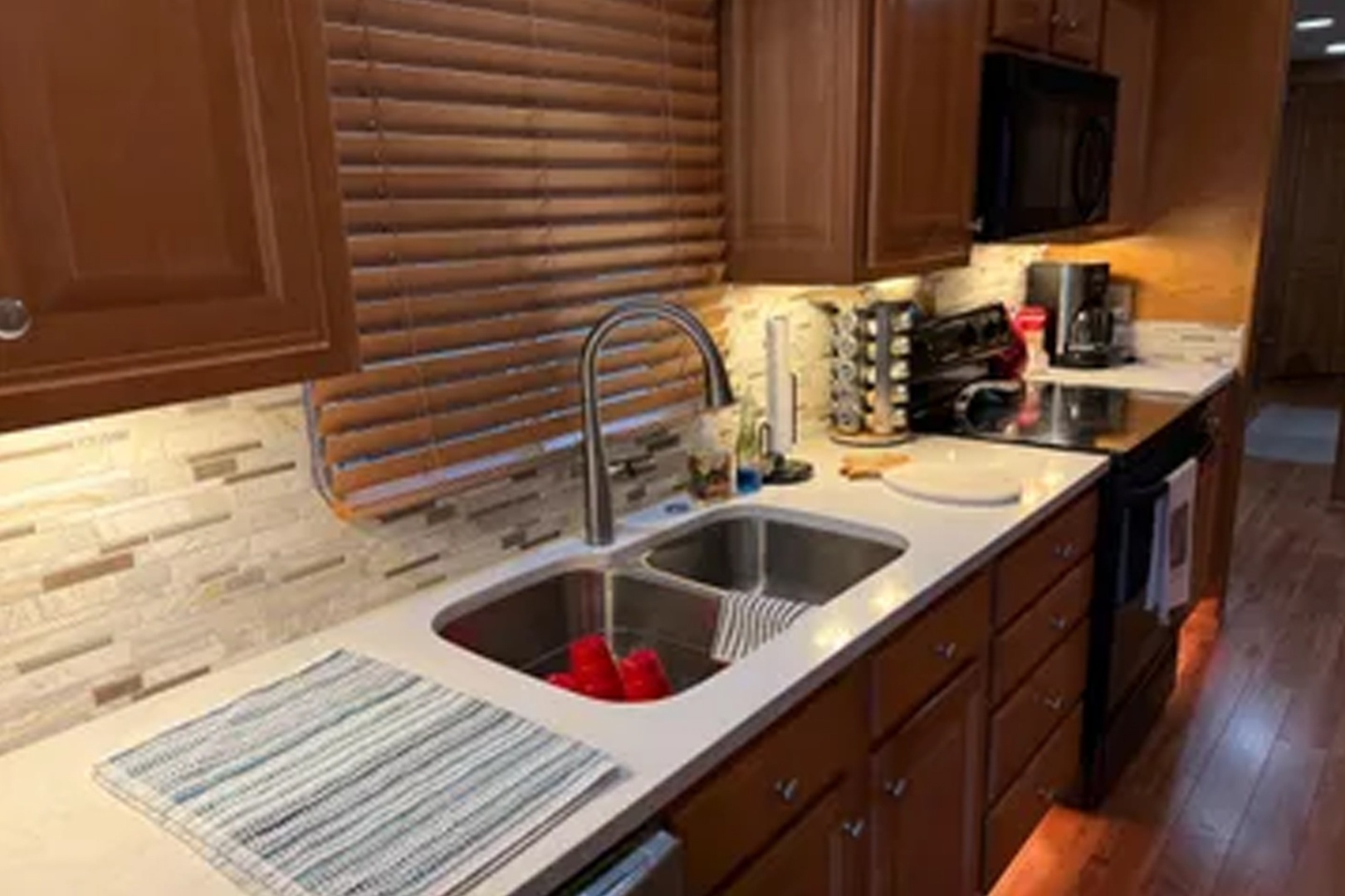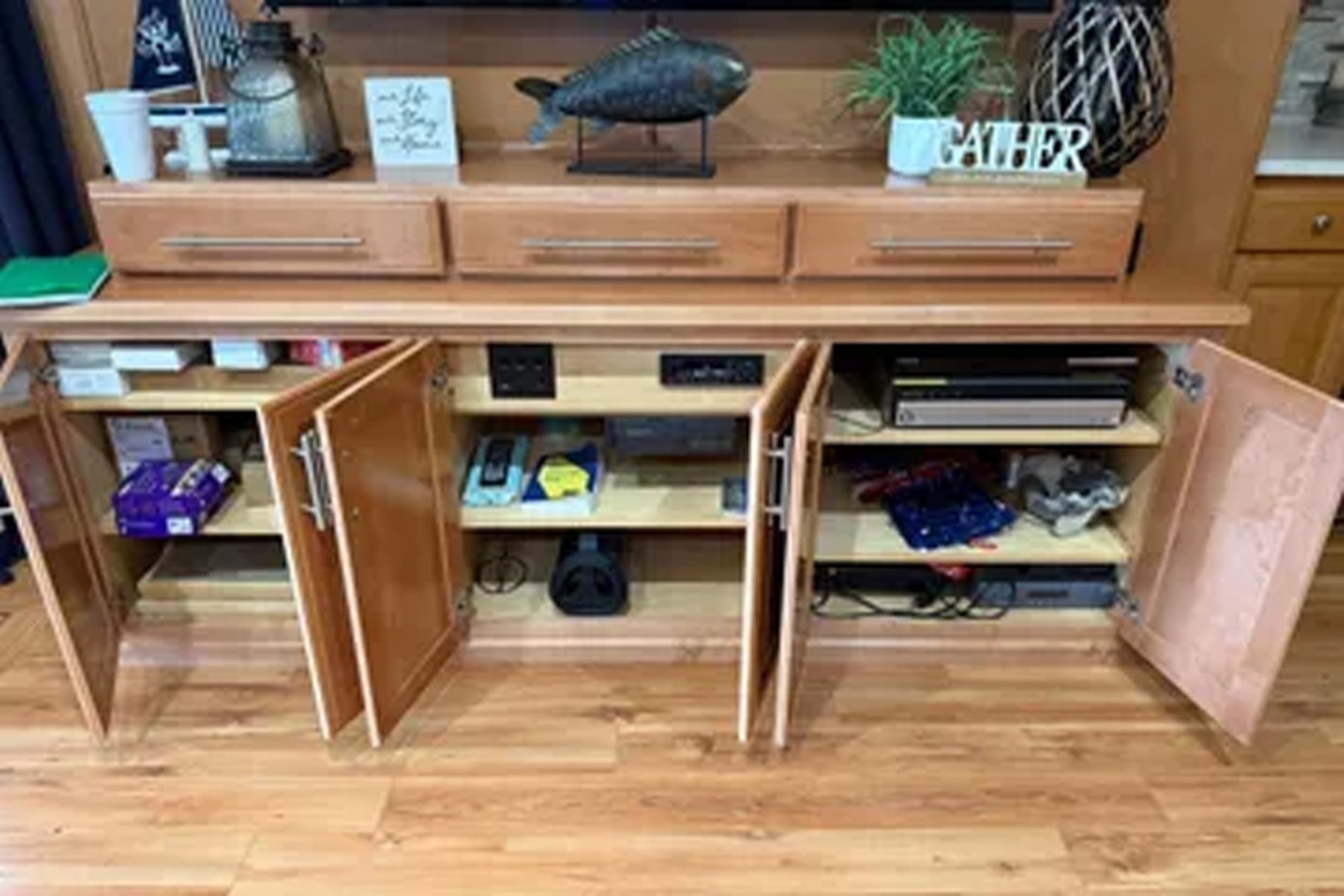 Updated and plenty of room for family and friends. Four staterooms and 2 full heads. Large galley/dining area with more than enough storage cabinets Under floor storage for bulk items and supplies Large salon area with L shape sofas and large screen for TV and family movie night. Large storage