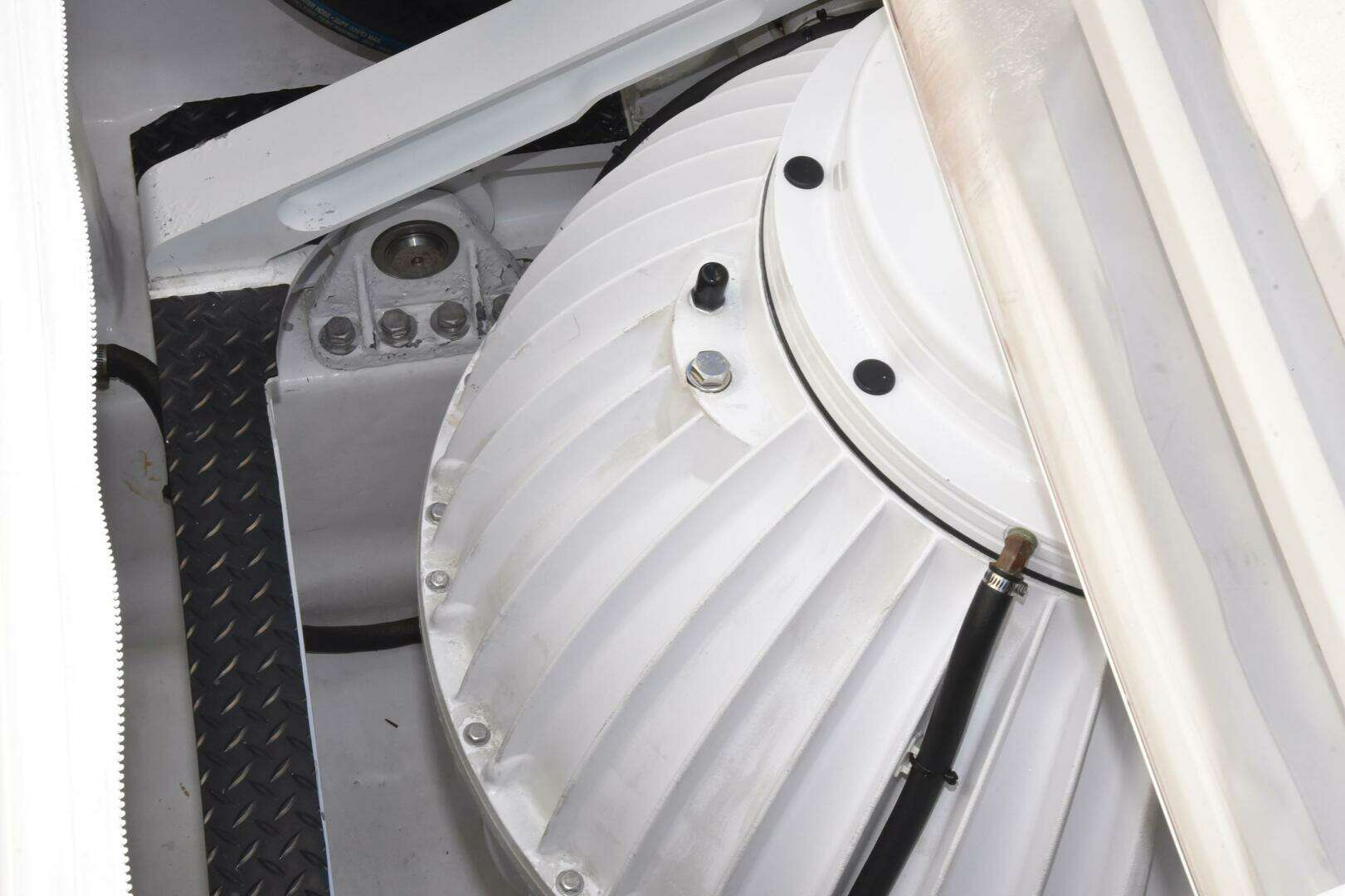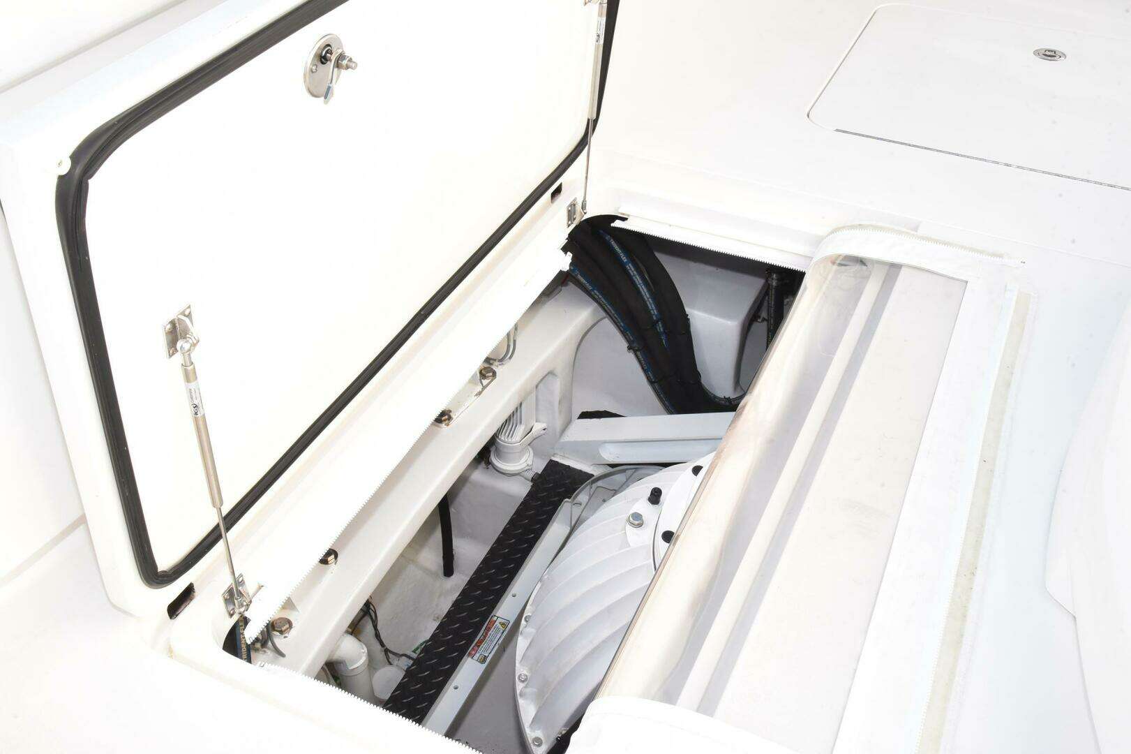 - Custom overhead storage rack in engine room