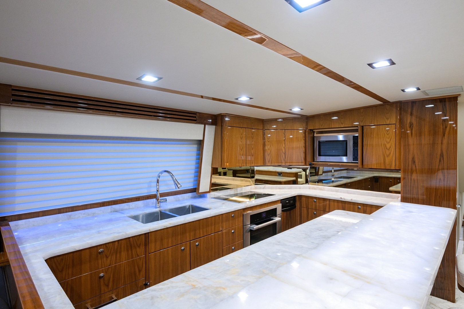 - Lumix Quartz countertops with backlighting in galley, day head and master