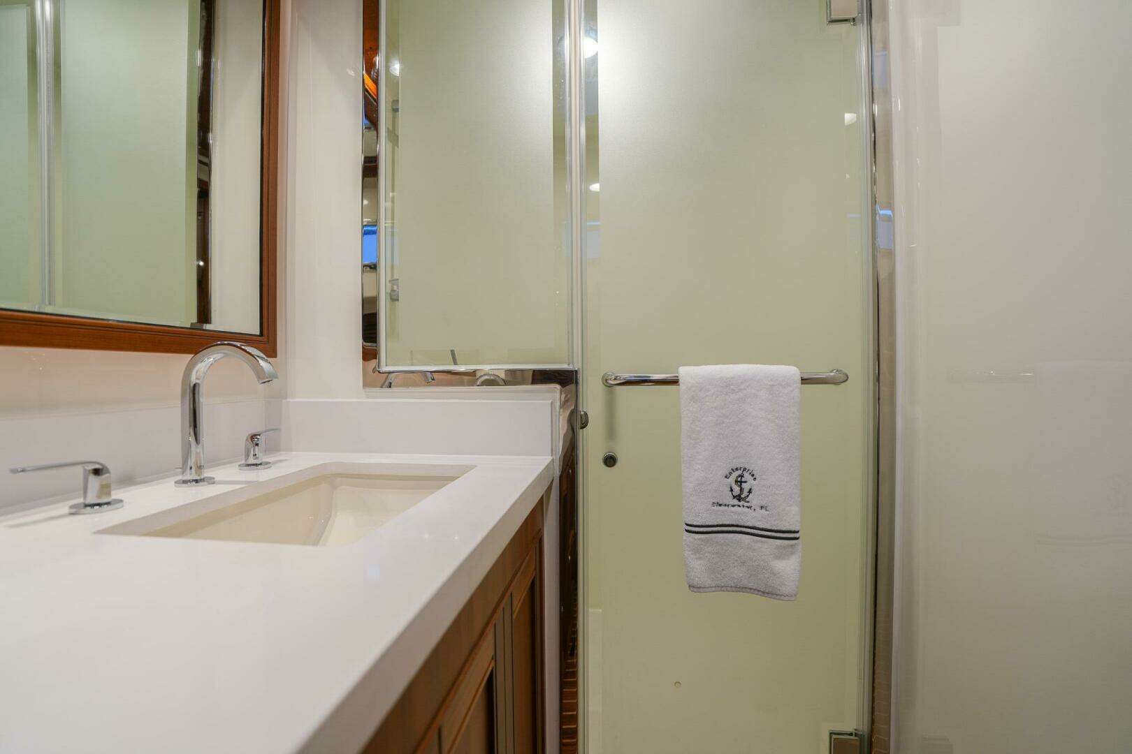The intelligently designed crew area features a fully insulated generator room to port, ensuring quiet operation throughout the yacht. To starboard, the elegantly finished crew quarters include two comfortable bunks and a private head, providing both privacy and functionality. When not in use by the captain or crew, this versatile space can easily be converted to accommodate additional guests, or storage space, offering flexibility without compromising comfort.