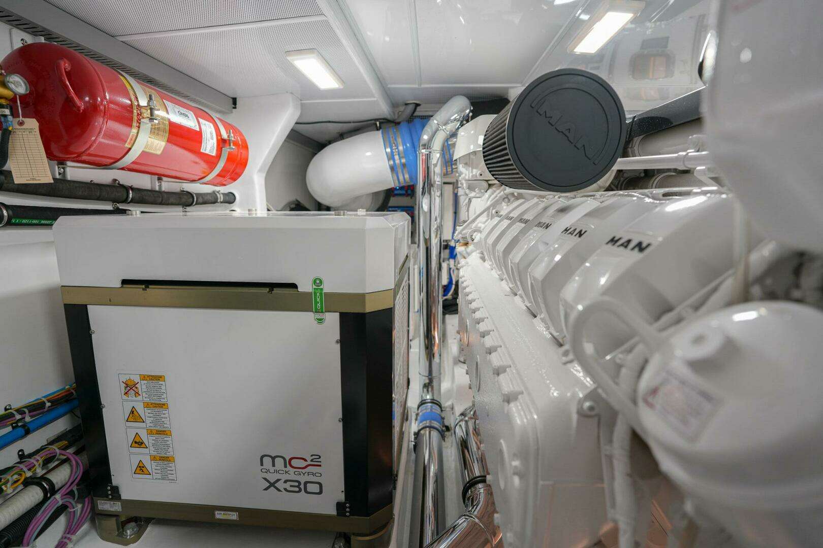 - Polished stainless steel engine beds, exhaust risers, and fuel manifolds heavy-duty watertight engine room door, with viewing port