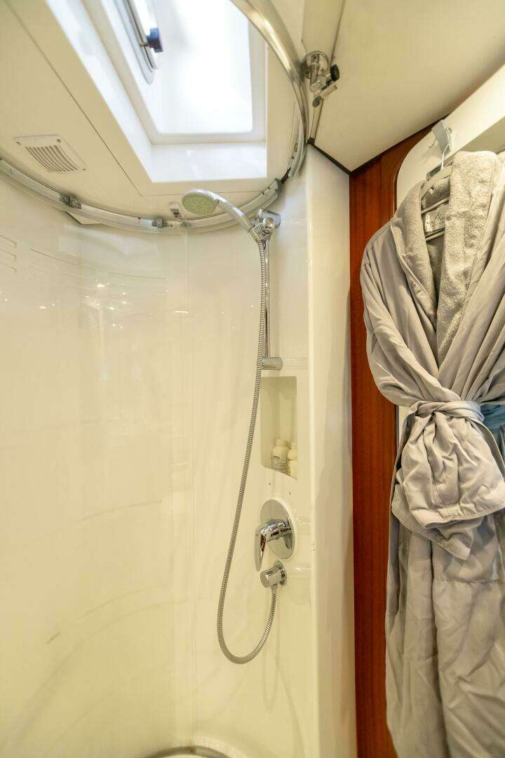 - 70 kg. custom stainless CQR Manson anchor is housed below deck on a carbon fibre anchor arm, hydraulically deployed and locking into the stem head fitting.