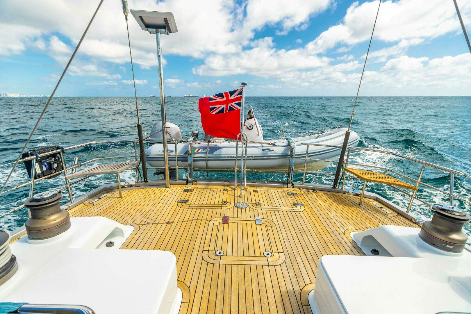 - Fortress secondary anchor stowed in chocks in the foredeck locker w/20mm anchor rode and 10M anchor chain.