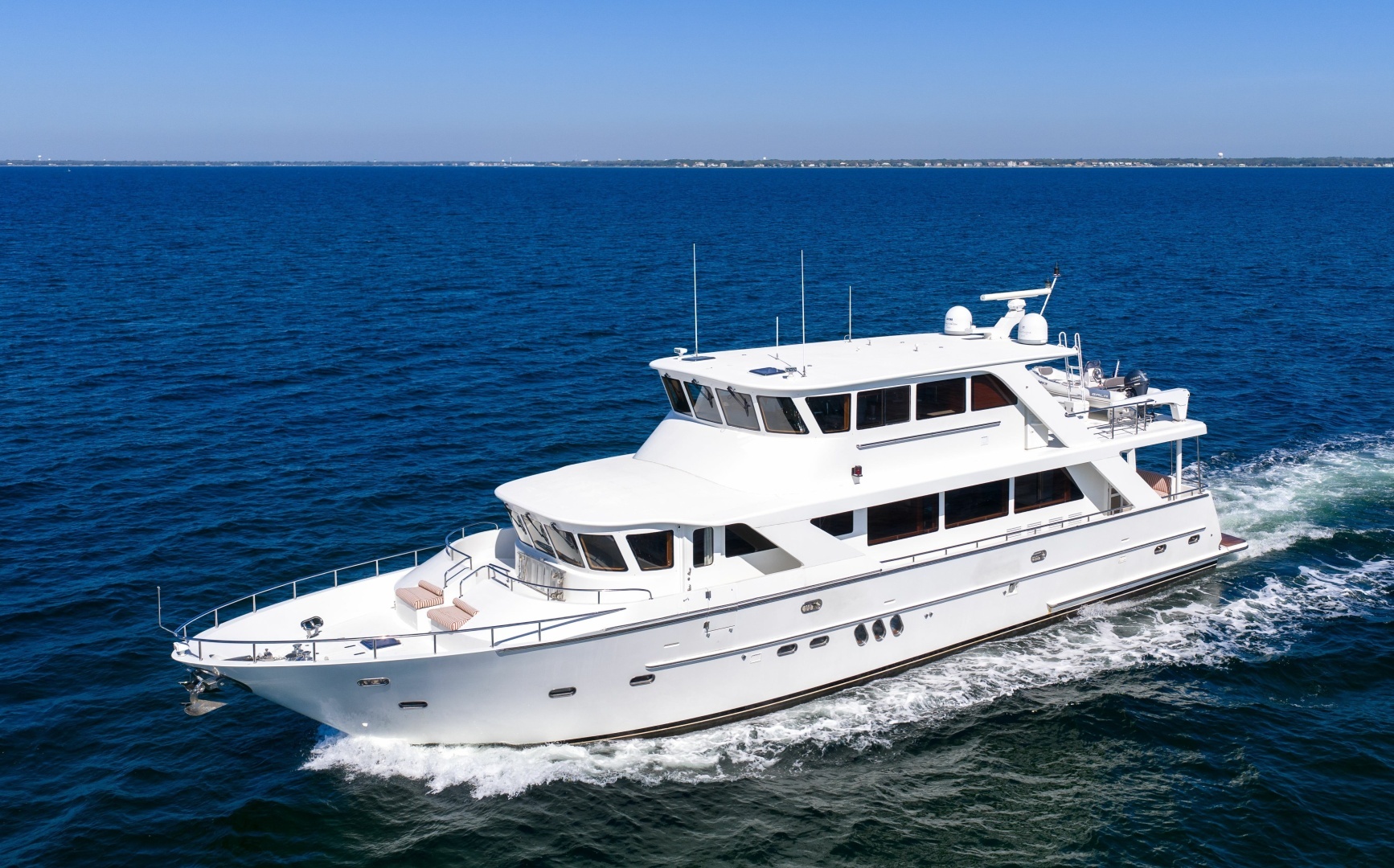 Rare Opportunity: The 2006 Jefferson Starship Pilothouse offers exceptional interior volume, elegant design, and a versatile four-stateroom layout plus crew quarters. Expansive entertaining spaces and an enclosed pilothouse make this 82-foot yacht ideal for entertaining and extended time aboard.