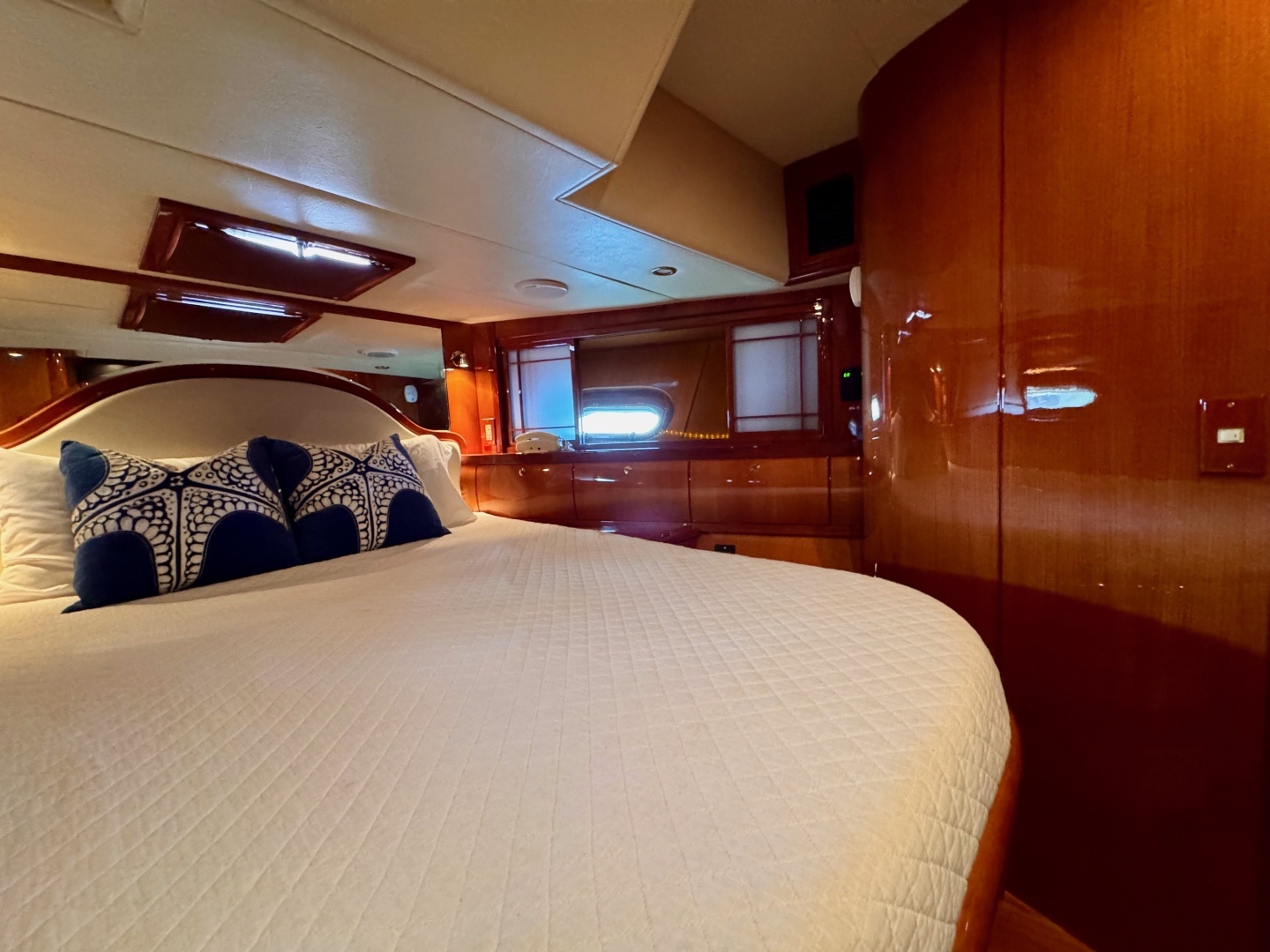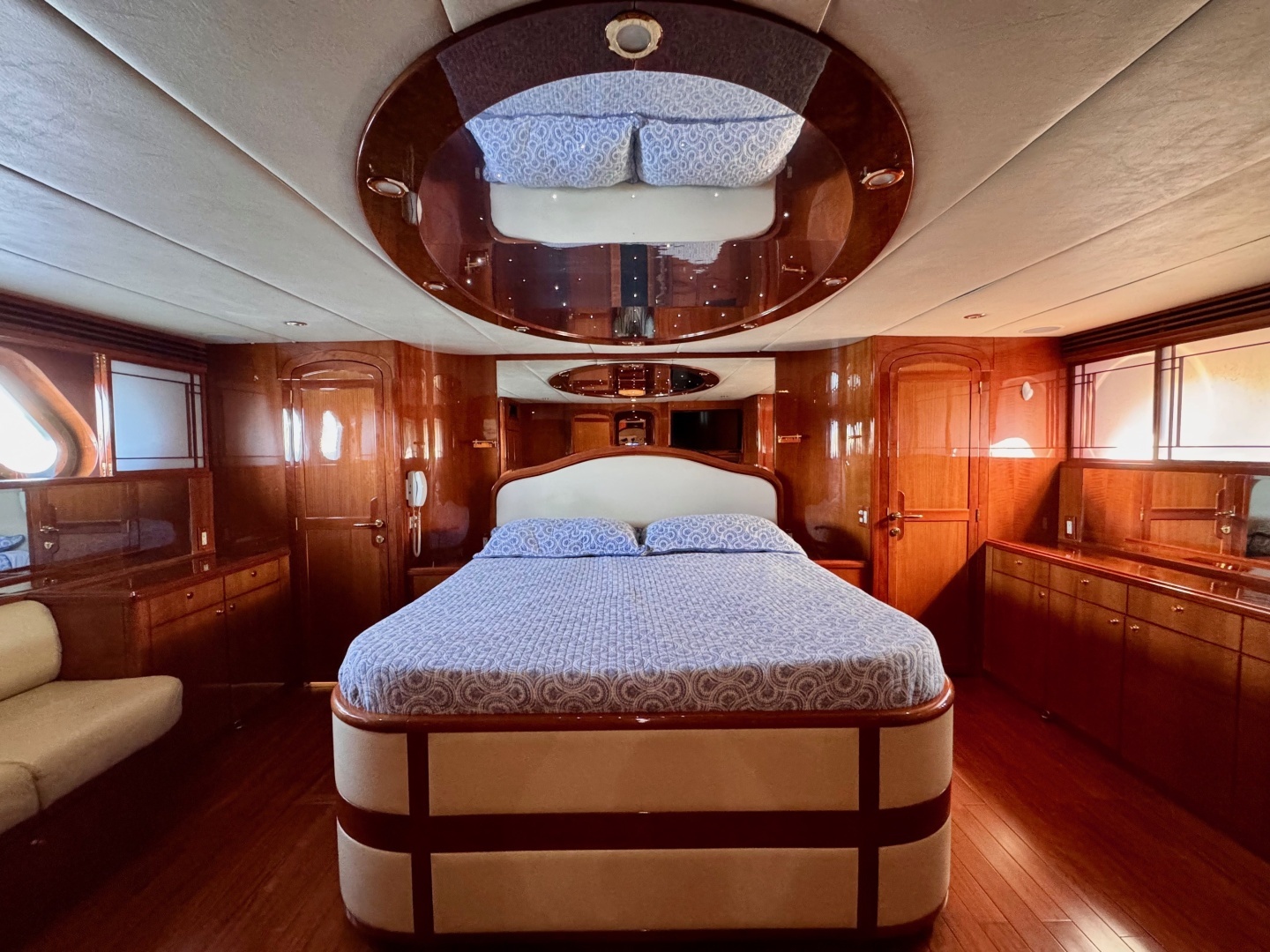 Accommodations are arranged to provide comfort and privacy for owners and guests alike. The full-beam master suite offers a spacious private retreat with a large ensuite head featuring a Jacuzzi tub. Additional guest staterooms provide comfortable accommodations for family and friends, while separate crew quarters offer flexibility for owners who choose to operate the yacht with professional assistance.