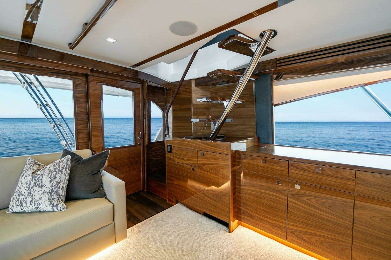 - Optional Seakeeper gyro stabilization, watermaker, and ice chipper