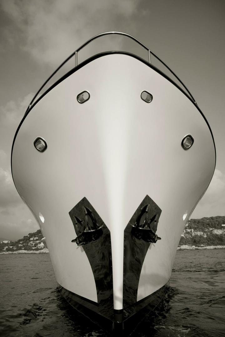 Sultana’s sea keeping is more comfortable due to much less pitching against the waves. Also, the bow contains the underwater camera and light.