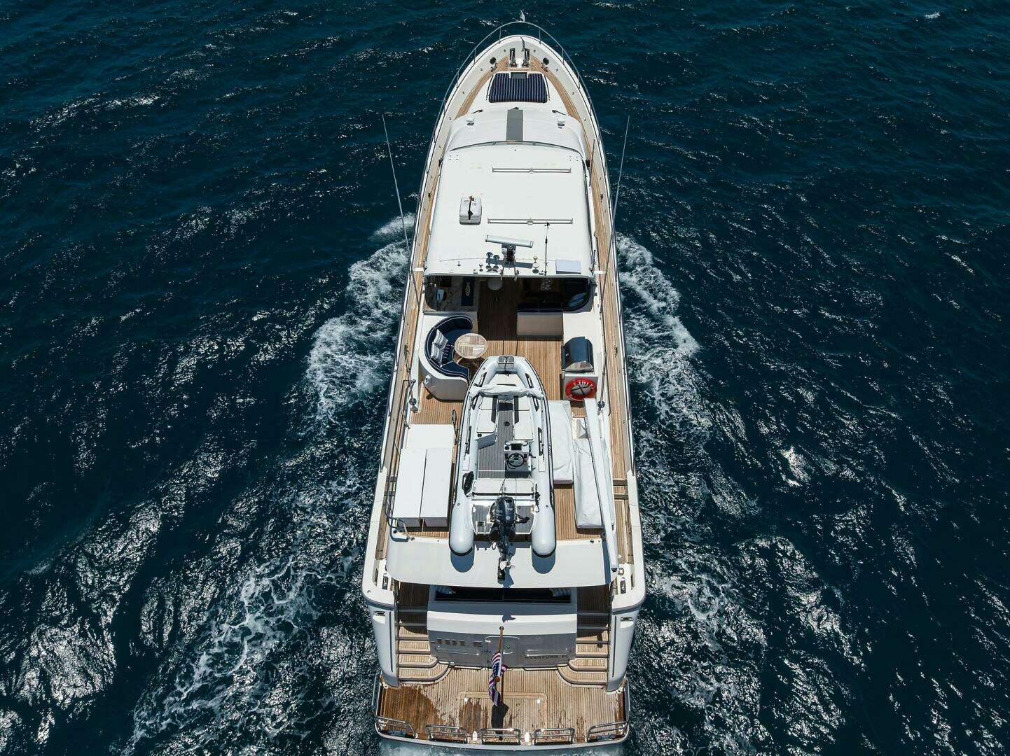 The boat deck easily converts into a large entertaining space once the tender is launched.