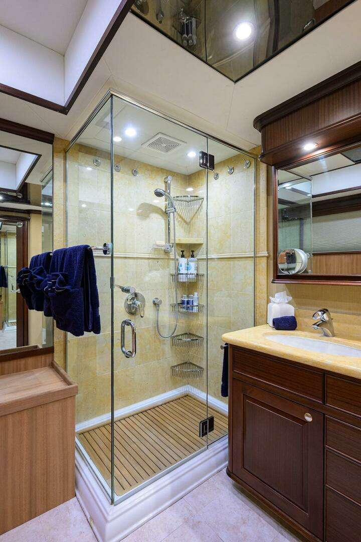 Accessed via a private staircase, the master rivals those found on yachts in the 110–120 ft range.