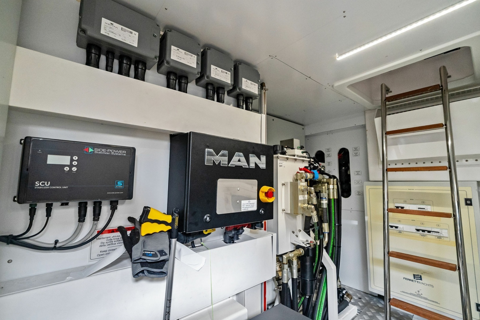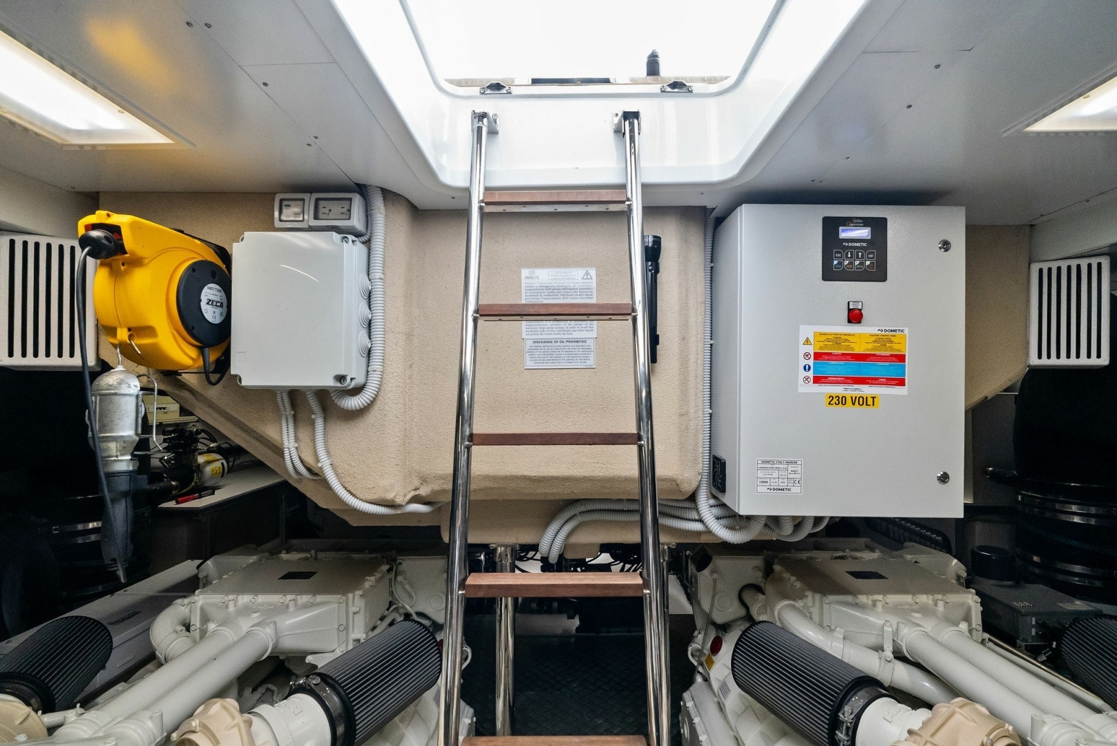 Outdoor living is equally impressive, with generous aft deck seating, a forward lounge area for relaxing at anchor, and a large flybridge ideal for entertaining, dining, or sunbathing. Powered for smooth and efficient performance, the Ferretti 860 offers a quiet, stable ride and effortless handling.