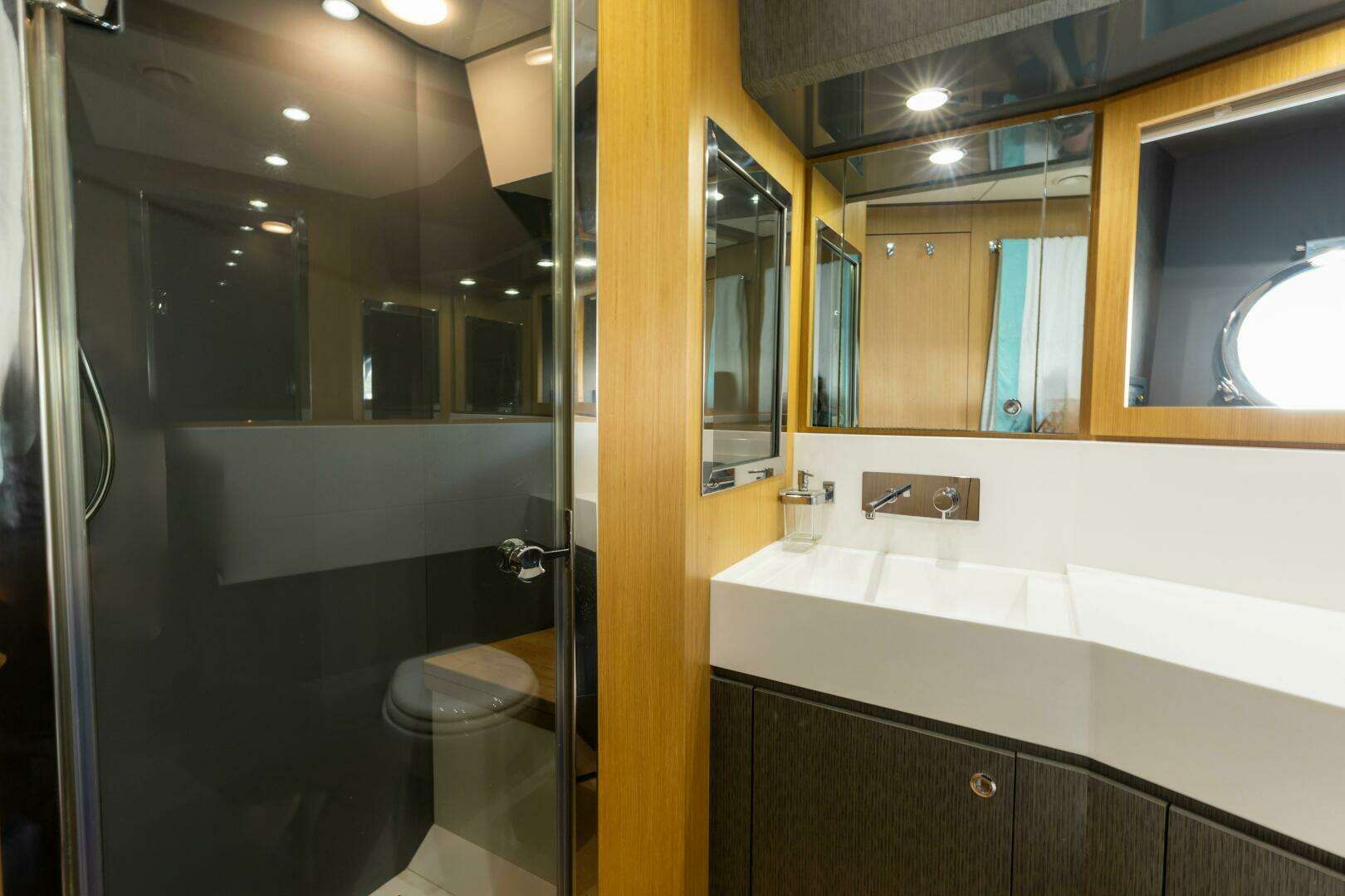 Guest Suites: Four staterooms with four ensuite heads (8 guests), accessed via a stunning Calacatta marble staircase.