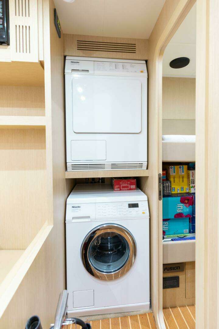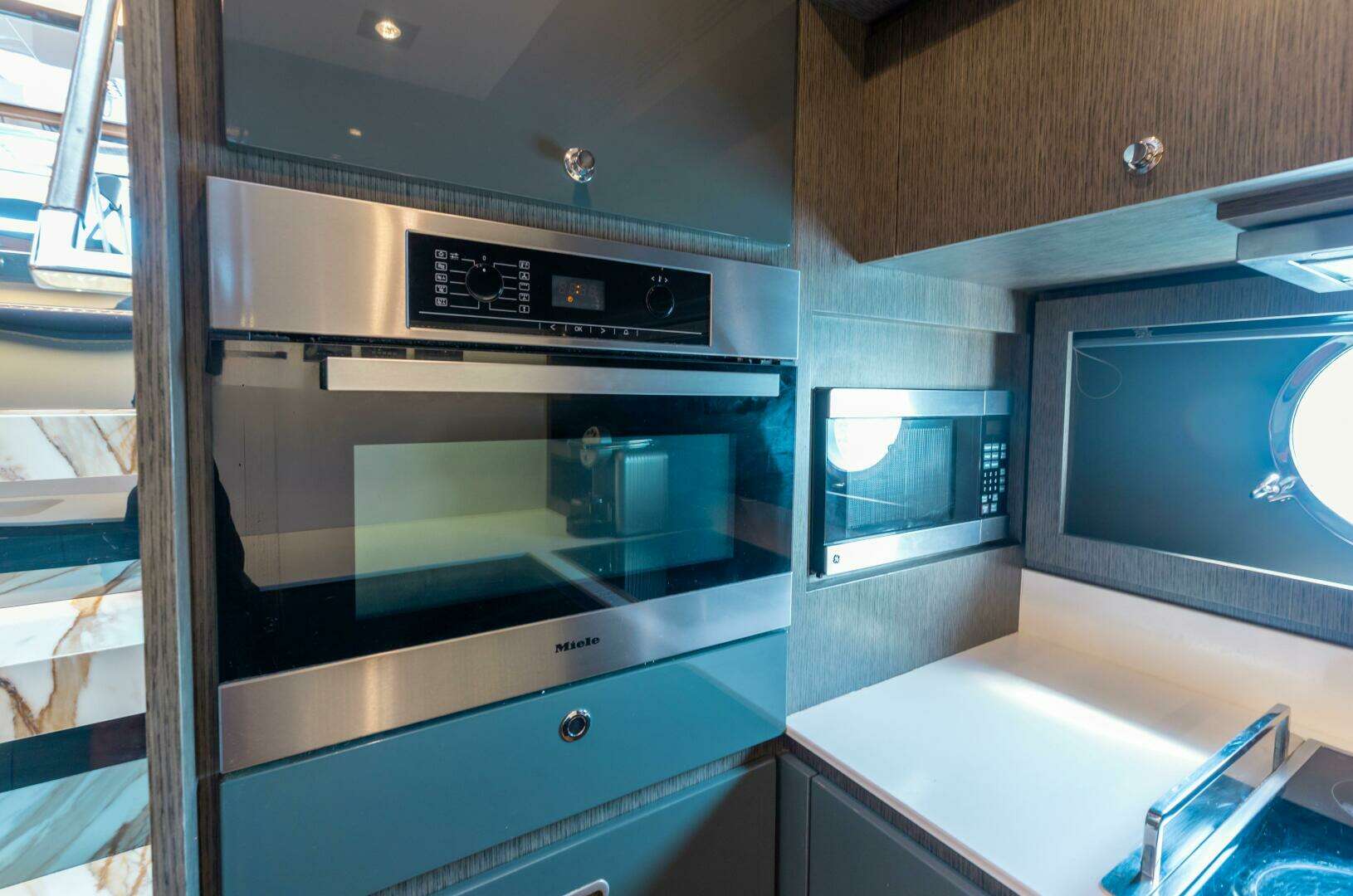 Galley & Crew: Fully equipped lower galley (Miele/Samsung); separate crew quarters (2 cabins/4 bunks) with private rear entrance for discreet service.