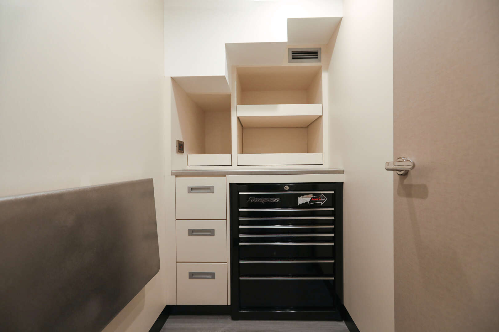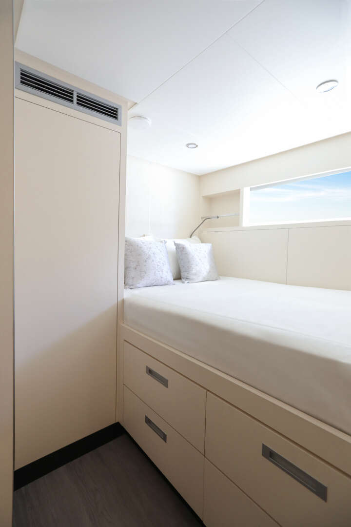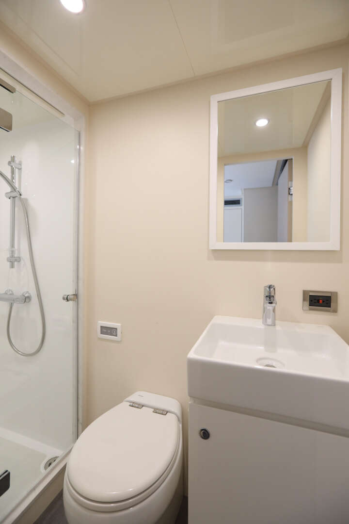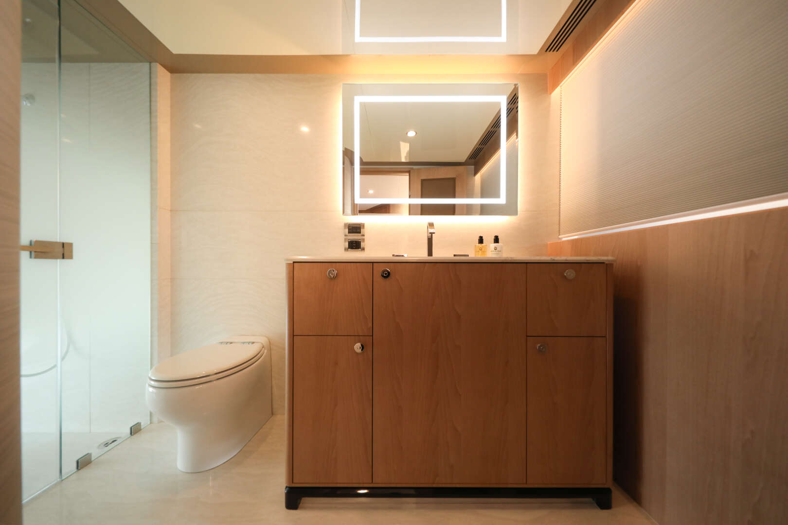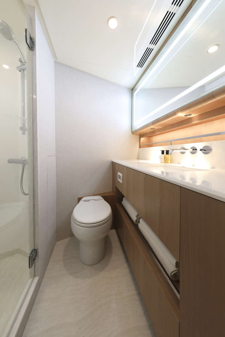 - Perfect Blend of Elegance and Comfort - The lower deck owner's suite is the perfect bland of elegance and comfort. The Owner's suite on the Ocean Alexander 28L is the epitome of luxury and sophistication. The suite is designed with a perfect balance of comfort and style, featuring plush furnishings, high-end finishes, and meticulous attention to detail. A king-sized bed, spacious walk-in closet, and a beautifully appointed en-suite bathroom with his-and-hers canities, a large shower, and luxurious materials create a serene, spa-like atmosphere.