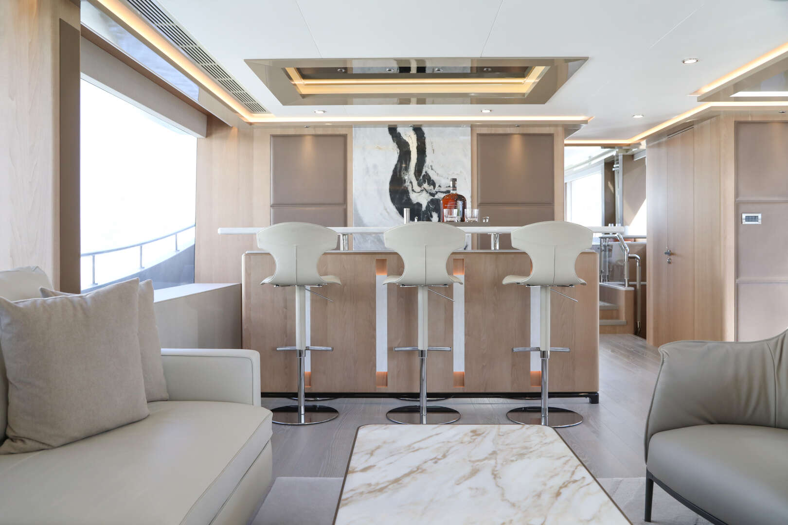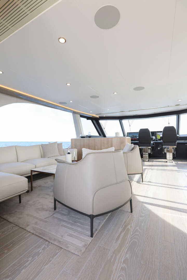 - Relaxation and Entertaining - An incredible space for relaxation or entertaining. The skylounge of the Ocean Alexander 28L is a masterpiece of design and functionality, offering a perfect blend of luxury and practicality. This elevated space provides commanding views of the surroundings, making it an ideal vantage point for both navigation and leisure.