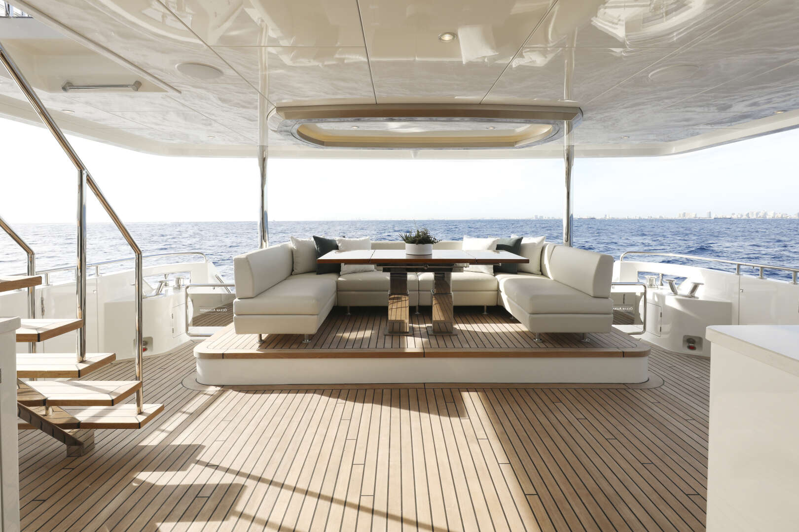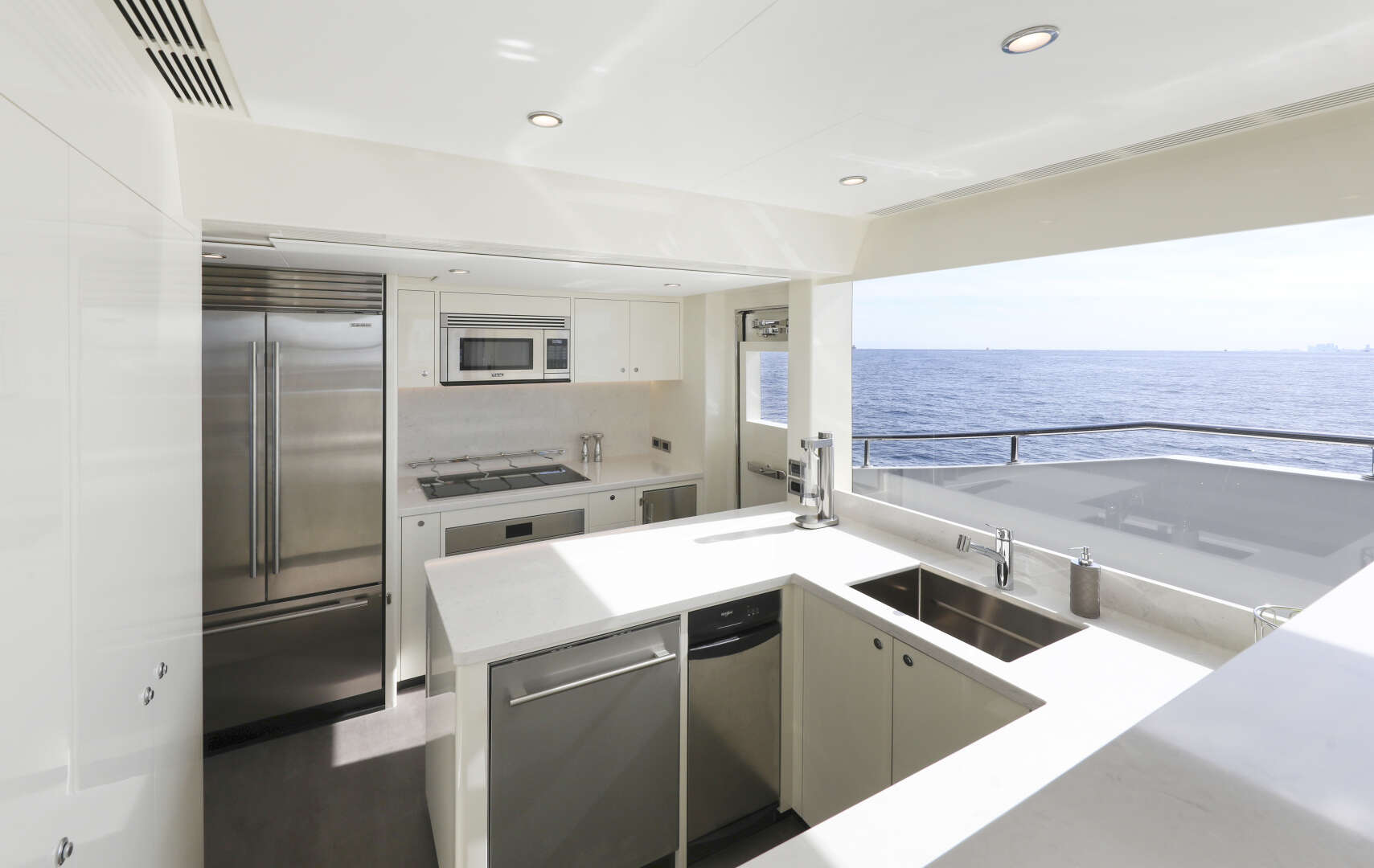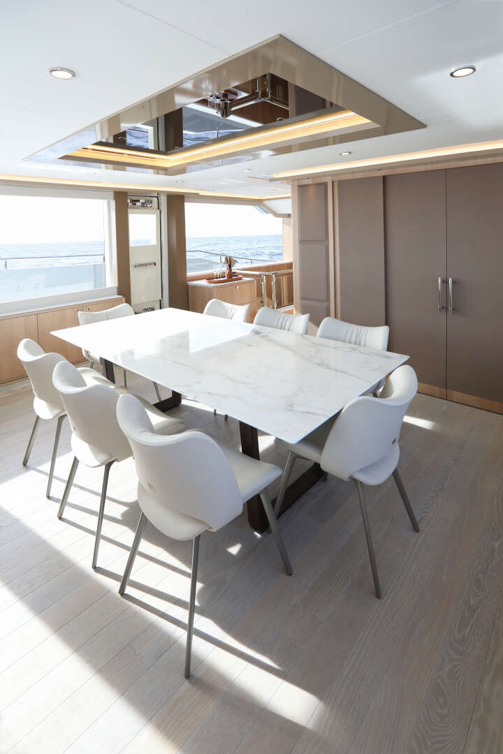 - Uniquely Designed - The salon and dining areas are uniquely designed. The salon offers breathtaking views, featuring a forward dining room on the main deck that flows effortlessly into the galley. This distinctive layout provides the flexibility for both formal and casual dining, with the option to create separation using an elegant pocket door system.