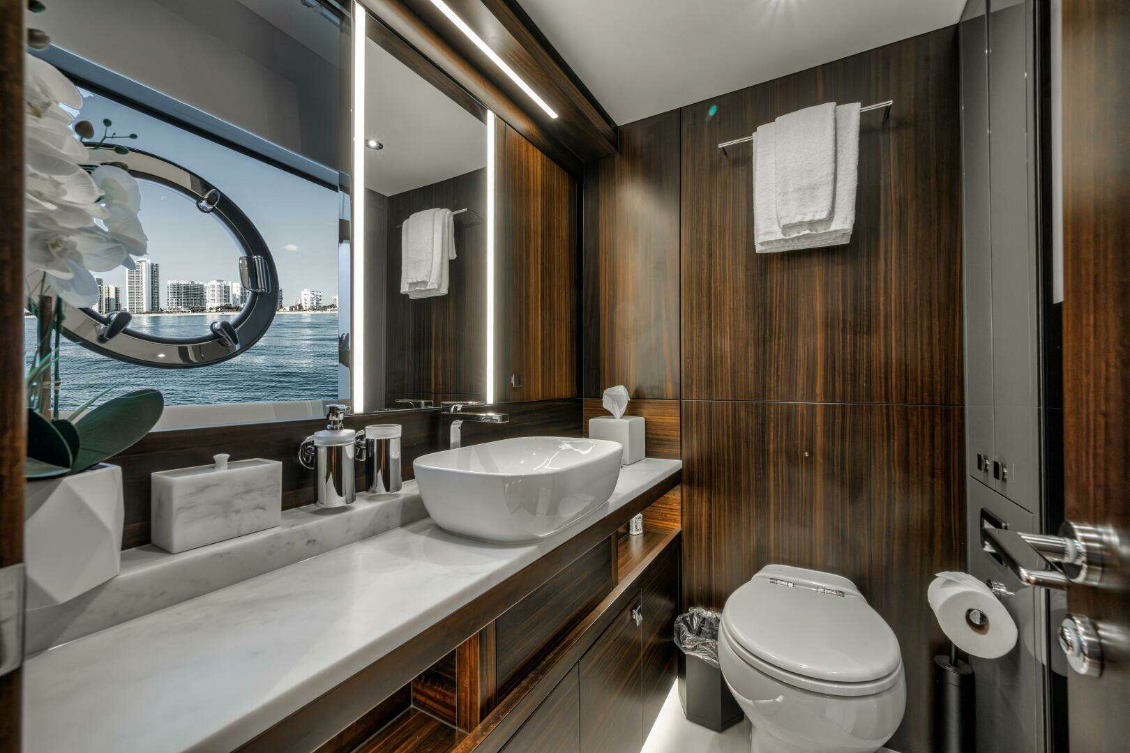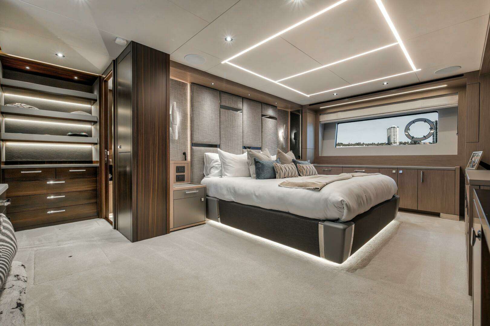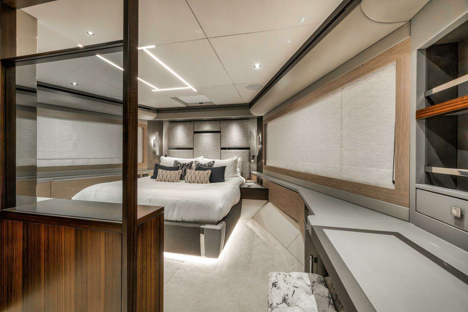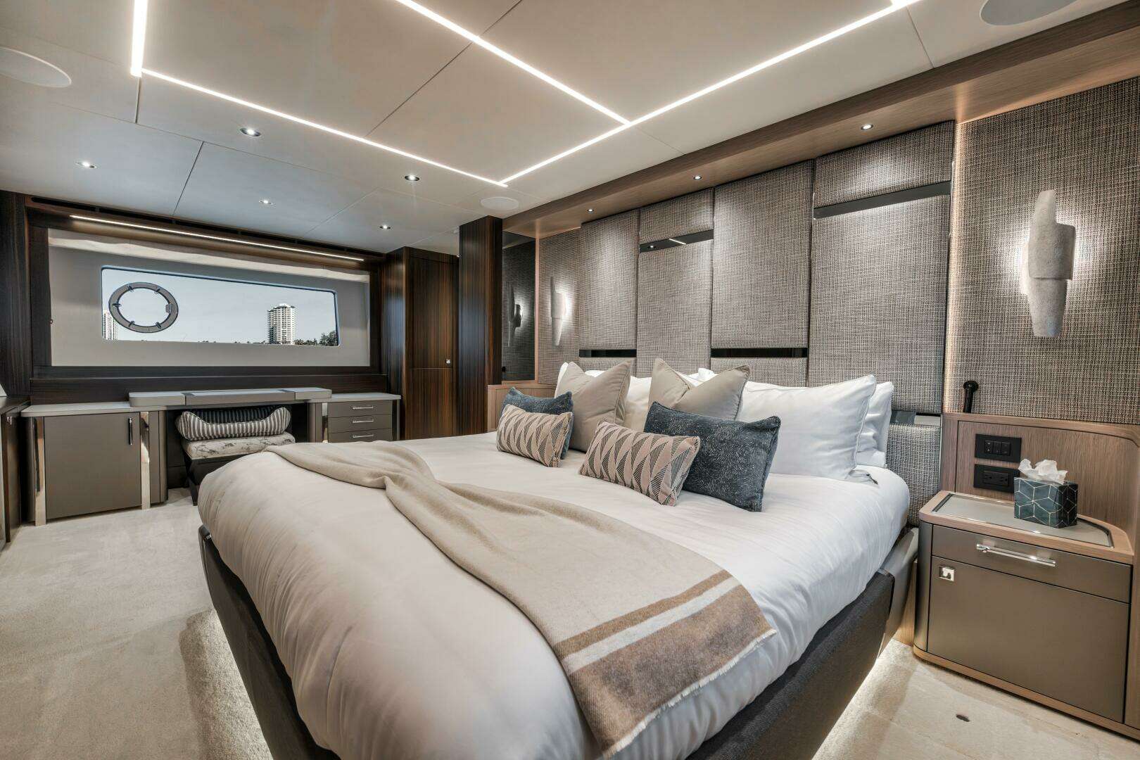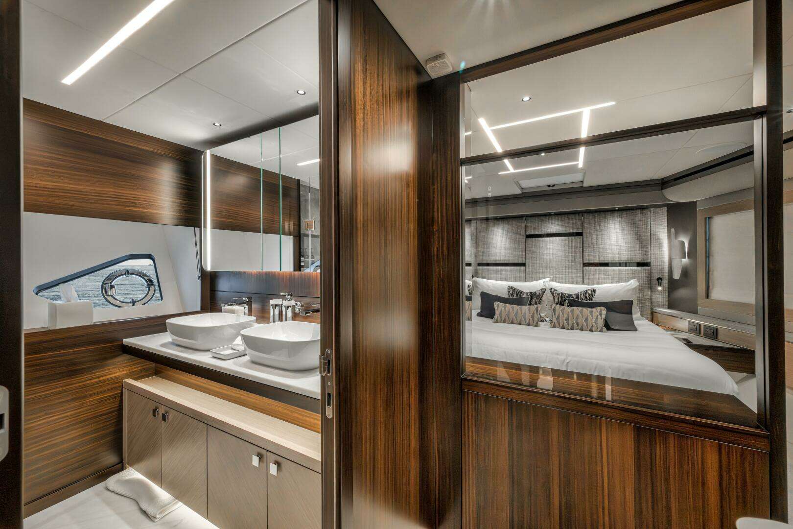 The Sunseeker 88 Yacht is known for its striking exterior lines, expansive outdoor entertaining areas, and refined interior craftsmanship. The layout offers generous accommodations with a large master and VIP, abundant natural light, and versatile social spaces ideal for both day yachting and extended cruising. She features the optional main-deck day head.